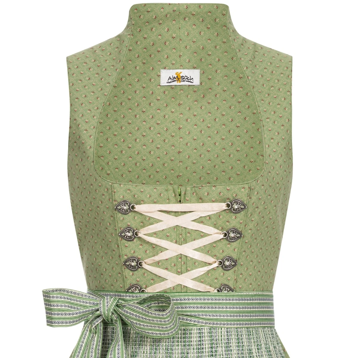 – Das Damen Dirndl Grün ist 70 Zentimeter lang und ein schickes Wiesn Dirndl. Das grüne Dirndl ist ein Dirndl Kleid Midi von Almsach.