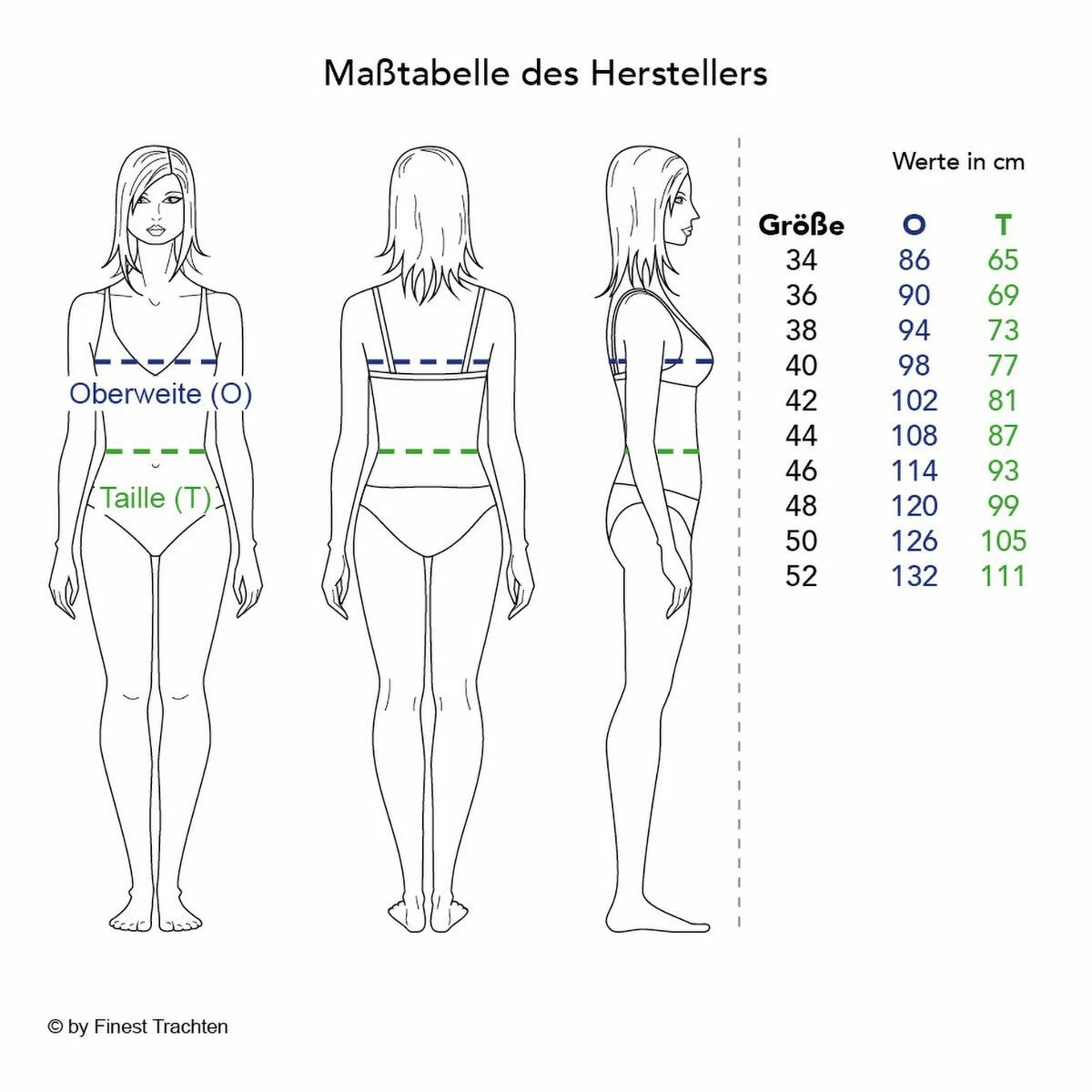 Hinweis zur Abbildung: Sofern nicht anders beschrieben, werden unsere Dirndl ohne Dirndlbluse geliefert. Dirndl und Bluse können Sie bei uns in verschiedenen Größen bestellen, so passt die Tracht perfekt. Unser Tipp: Variieren Sie z. B. zwischen weißen und schwarzen Dirndlblusen, viele unserer Dirndl können mit beiden Farben und verschiedenen Dirndlblusen (z. B. Langarmbluse, Kurzarmbluse) getragen werden. Zudem können fast alle unsere Dirndl für kleines Geld (ca. 15 Euro) beim Schneider angepasst werden wenn es einmal nicht passt. So wird ein wunderschönes Dirndl zu Ihrem perfekt sitzenden Dirndl Unikat!