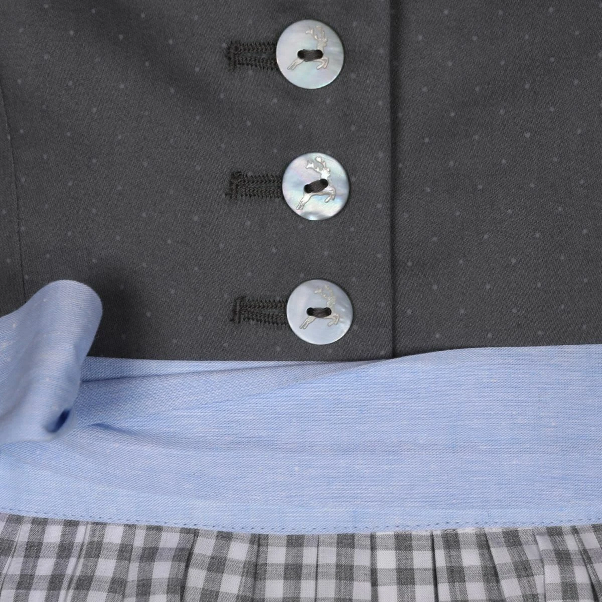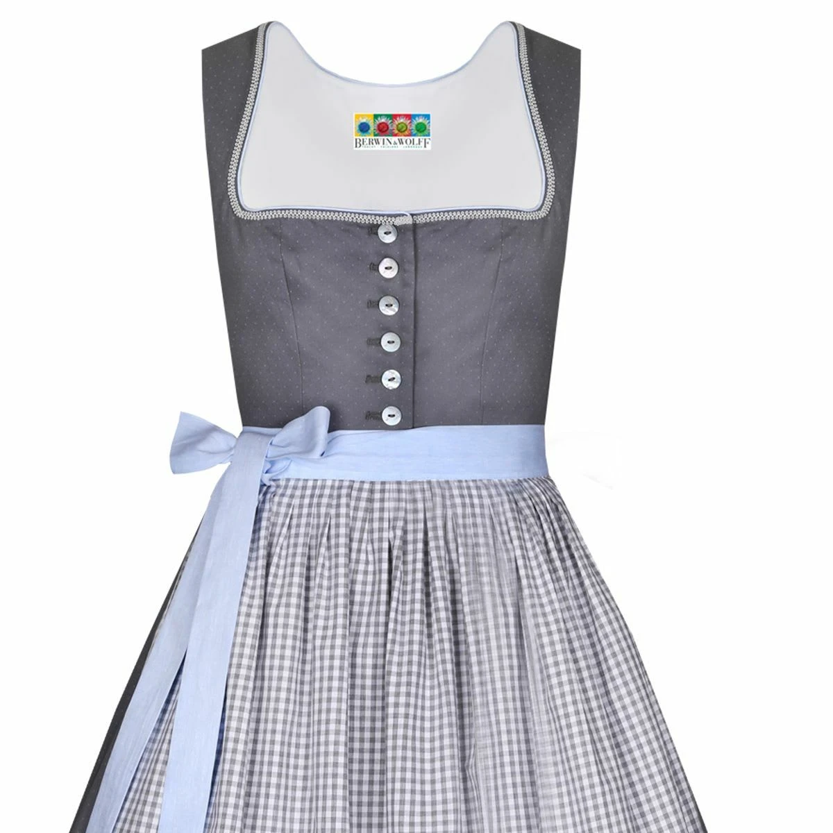 – Das graue Dirndl von Berwin & Wolff hat eine Länge von 75 cm. Das Dirndlkleid wurde mit hellgrauen Punkten geschmückt. Das Dirndl wird mit einer schlichten Knopfleiste verschlossen.
