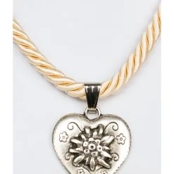 – Mit Kordel-Garnitur aus Hanf befestigt durch ein seitliches Edelweiss auf einem Leder Patch