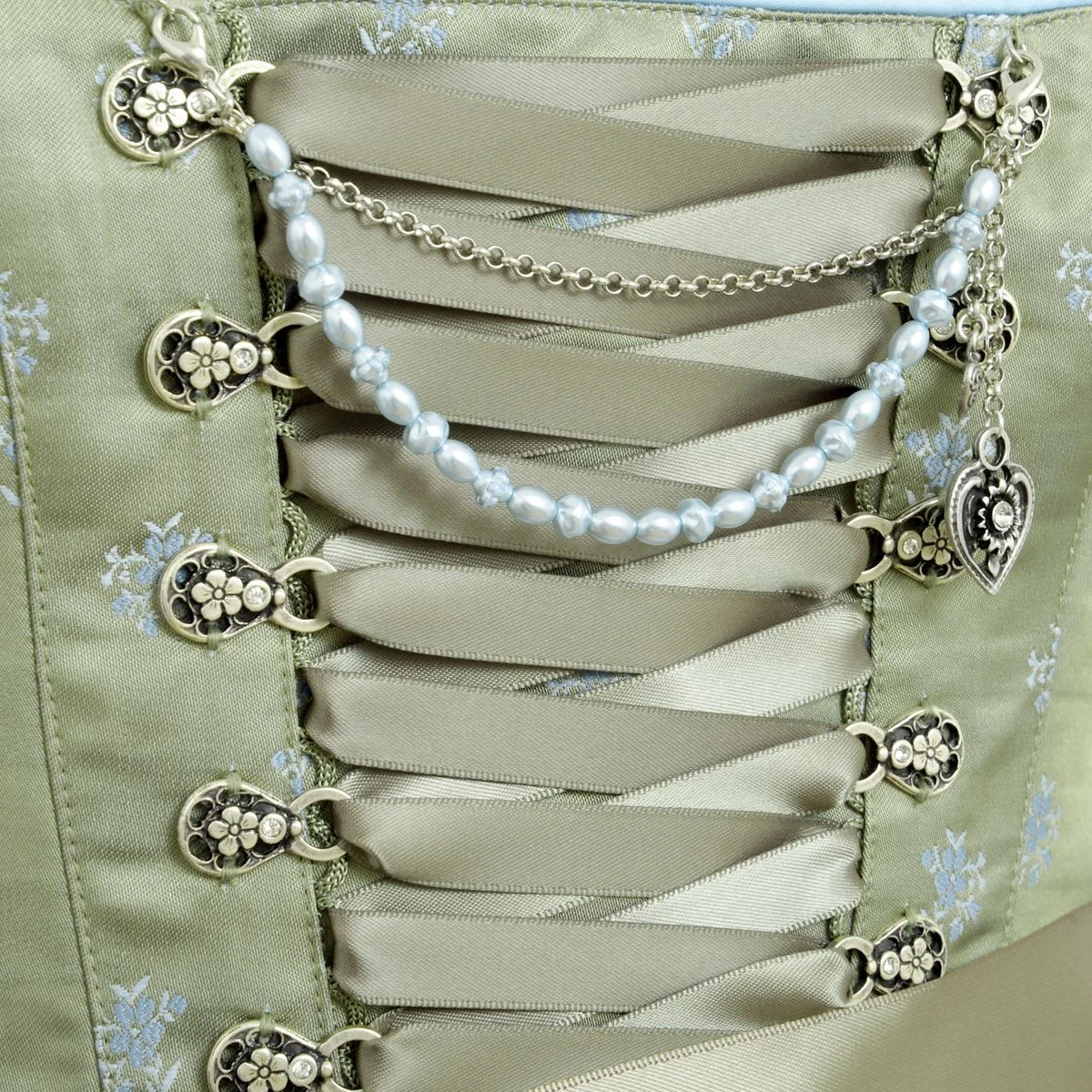 Ein schickes Midi Dirndl Vera in Kaki von Country Line. Das gesamte Dirndlkleid ist mit einem umwerfenden Blumenmuster versehen. Der Balkonett-Ausschnitt zaubert ein tolles Dekolleté. Durch die Schnürung mit hübschen Ösen, die in Blumenoptik gestaltet sind, wird ein angenehmer Tragekomfort erzielt. Zudem ziert eine dekorative Kette die Schnürung. Die Doppelschürze ist mit glitzernden Blumen bestickt und mit Schürzenbändern an der Taille zu binden. Das Dirndl ist ganz einfach an der Seite mit einem Reißverschluss zu verschließen. Außerdem besitzt der Dirndlrock praktische Eingrifftaschen und misst eine Länge von 60 cm.Alle Dirndl aus unserem Shop sind von renommierten Marken und bester Qualität. Sie suchen ein Dirndl kurz oder Midi Dirndl? Auch lange Dirndl führen wir unter unseren Dirndl Trachten in allen Varianten. Traditionell Dirndl oder moderne Dirndl mit Spitze und knalligen Farben. Ein Dirndl zaubert eine tolle Figur! Daher wird ein weisses Dirndl gern zur Hochzeit getragen. Das Dirndl schwarz ist bei Kellnerinnen sehr beliebt. Zum Volksfest gehört ein Trachten Dirndl für Damen und bei uns finden Sie gewiss ihr Oktoberfest Dirndl. Mit ihrem neuen Wiesn Dirndl Damen ziehen Sie gewiss alle Blicke auf sich! Hinweis zur Abbildung: Sofern nicht anders beschrieben, werden unsere Dirndl ohne Dirndlbluse geliefert. Dirndl und Bluse können Sie bei uns in verschiedenen Größen bestellen, so passt die Tracht perfekt. Unser Tipp: Variieren Sie z. B. zwischen weißen und schwarzen Dirndlblusen, viele unserer Dirndl können mit beiden Farben und verschiedenen Dirndlblusen (z. B. Langarmbluse, Kurzarmbluse) getragen werden. Zudem können fast alle unsere Dirndl für kleines Geld (ca. 15 Euro) beim Schneider angepasst werden wenn es einmal nicht passt. So wird ein wunderschönes Dirndl zu Ihrem perfekt sitzenden Dirndl Unikat!