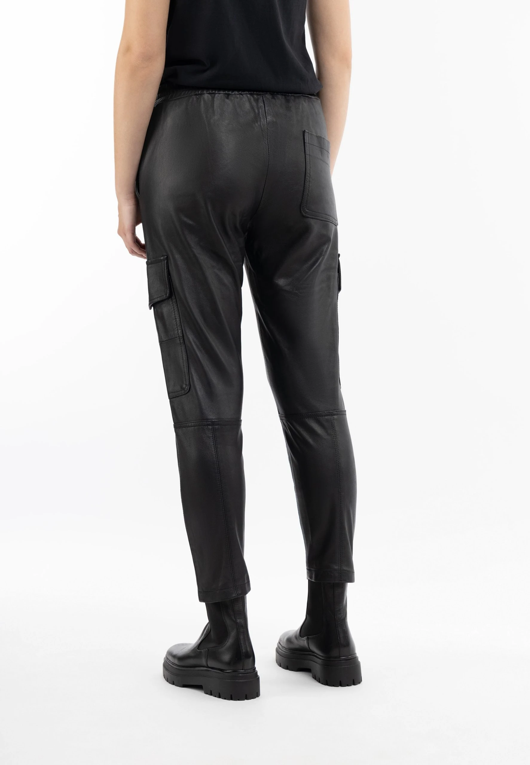 Mit dieser Neuinterpretation einer Cargo-Hose liegt DreiMaster Vintage modisch ganz weit vorne. Die in Italien produzierte Hose ist aus einem butterweichen Lammleder gefertigt und mit den stiltypischen aufgesetzten seitlichen Taschen ausgestattet. Ein elastischer Bund und eine Gesäßtasche verleihen dem lässigen Design den letzten Feinschliff.