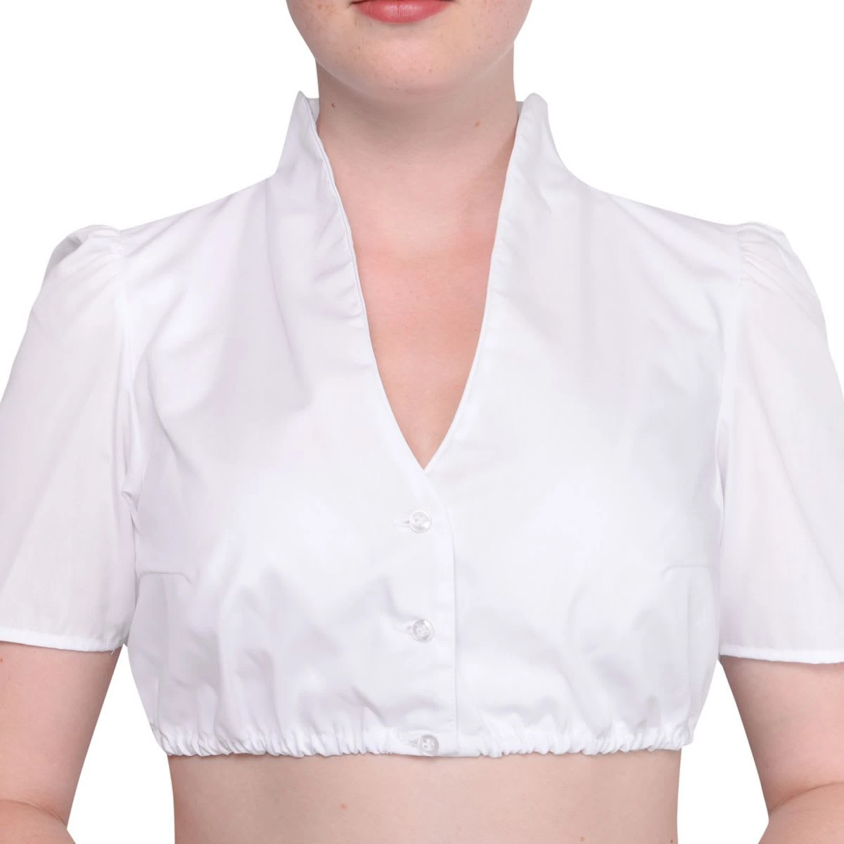 – Zu Ihrem Dirndl suchen Sie eine Dirndlbluse in weiß, dann sollten Sie auch bedenken, ob Sie kurzarm Dirndlbluse möchten, eine Halbarm-Dirndbluse oder Langarm-Dirndlbluse. Es gibt Dirndblusen weiß mit Spitze, leicht transparent in reinweiß.