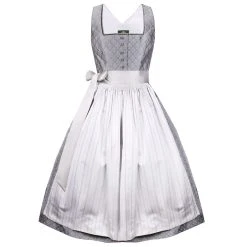Ein Midi Dirndl Thiersee in Grau von der Marke Hammerschmid. Sehr schön zeigt sich das Modell Thiersee mit einem traditionellen Mieder, welches mit edlen Knöpfen zu schliessen ist. Der Ausschnitt am gemusterten Mieder ist mit einer farblich passenden Samtborte verziert. Rock und Mieder sind einem eleganten Ornamentmuster gestaltet. Passend dazu ist die hellgraue Schürze mit Streifenmuster in der Taille zu binden. Dieses Dirndl hat eine Rocklänge von 70 cm.Hinweis zur Abbildung: Sofern nicht anders beschrieben, werden unsere Dirndl ohne Dirndlbluse geliefert. Dirndl und Bluse können Sie bei uns in verschiedenen Größen bestellen, so passt die Tracht perfekt. Unser Tipp: Variieren Sie z. B. zwischen weißen und schwarzen Dirndlblusen, viele unserer Dirndl können mit beiden Farben und verschiedenen Dirndlblusen (z. B. Langarmbluse, Kurzarmbluse) getragen werden. Zudem können fast alle unsere Dirndl für kleines Geld (ca. 15 Euro) beim Schneider angepasst werden wenn es einmal nicht passt. So wird ein wunderschönes Dirndl zu Ihrem perfekt sitzenden Dirndl Unikat!