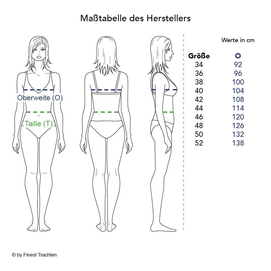 – Bitte beachten Sie unsere Pflegehinweise zu den Dirndlblusen weiß für Damen. Grundsätzliche können Sie die Dirndlbluse Damen weiß waschen mit den Angaben des Hersteller. In der Regel ist das 30 Grad Maschinenwäsche.