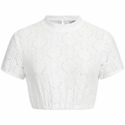 Eine wunderschöne Dirndlbluse Ella in Weiß von der Marke Hess. Die hübsche Dirndlbluse wurde komplett aus einem schönen Spitzenstoff gefertigt. Zudem besitzt die Bluse einen Schlupf-Stehkragen und ist hochgeschlossen. Auf der Rückseite wird die Bluse mit zwei dezenten Knöpfen verschloßen. Am Bund befindet sich ein Gummiband, dieses sorgt für den optimalen Halt. Dieses Modell zeigt sich mit einem kurzen Arm.