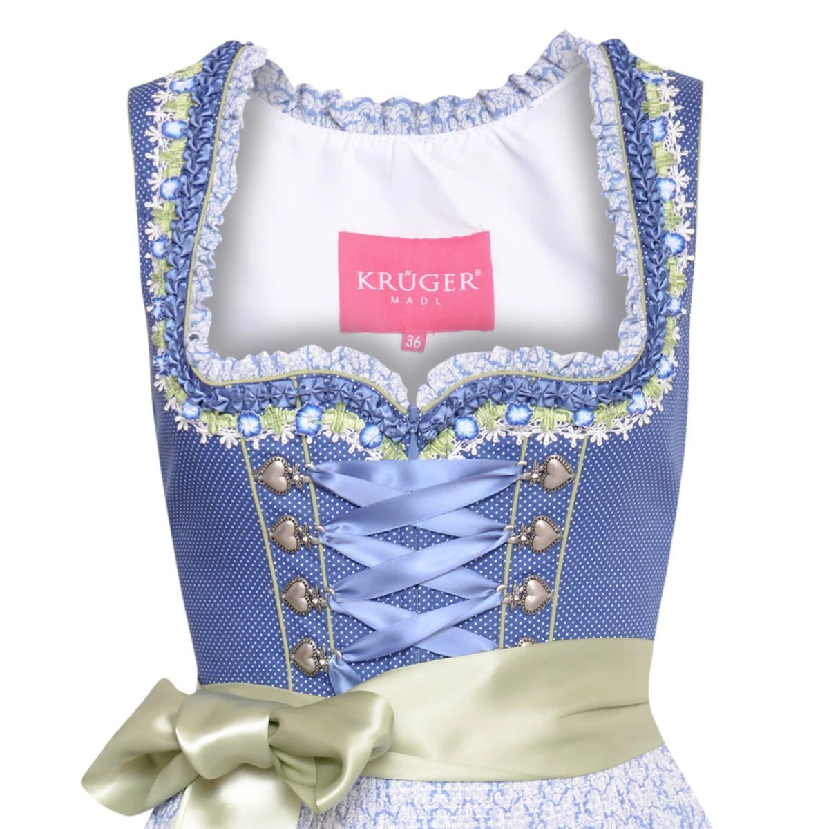 – Das Krüger Dirndl Damen Dirndl blau ist 60 Zentimeter lang und ein schickes Wiesn Dirndl. Dieses blaue Dirndlkleid verzaubert durch seine Eleganz. Ein Designer Dirndl in traumhaften blau. Ihr Vorteil bei einem blauen Dirndl ist