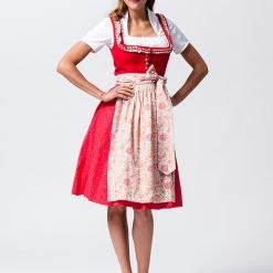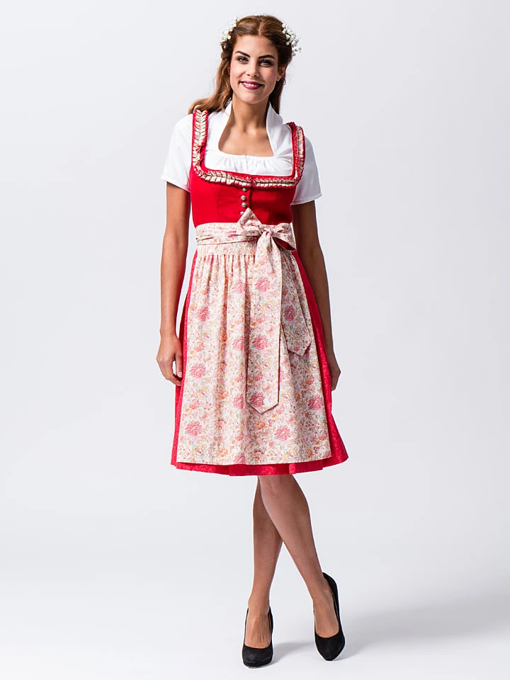 LENI VON CS Midi-Dirndl “Jasmin” In Rot/ Creme