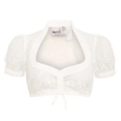 Wunderschöne Dirndlbluse Becca-Lauren in Creme von der Marke Marjo Trachten. Die Dirndlbluse zaubert durch ihren Balkonett-Ausschnitt ein üppiges Dekolleté! Der Ausschnitt ist mit einem Zugband verstellbar. Diese kurzärmlige Bluse ist durchgehend aus transparenter Spitze gefertigt. Der leichte Stehkragen lässt die Spitzenbluse besonders edel wirken. Dieses Modell überzeugt mit einem super Preis-Leistungsverhältnis!