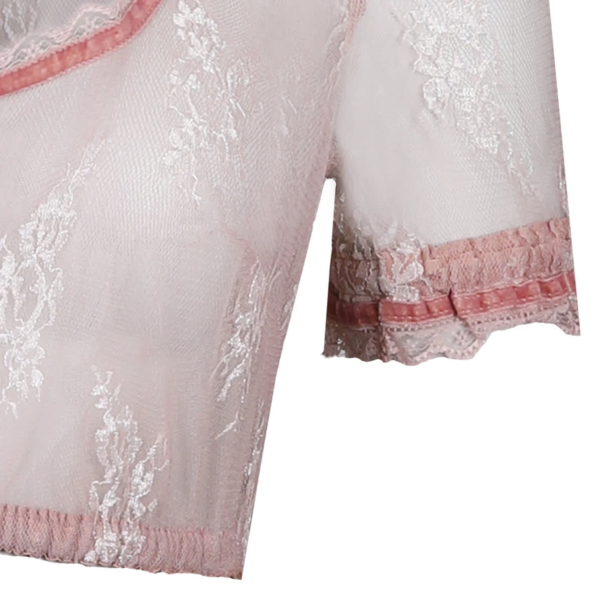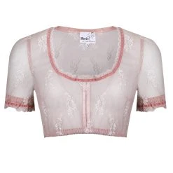 Eine bezaubernde Dirndlbluse Frieda-Corinna in Rose von der Firma Marjo Trachten. Die Bluse mit tollen Balkonett-Ausschnitt ist durchgehend mit transparenter Spitze in floralem Muster verarbeitet. Das Modell mit kurzen Ärmeln ist besonders vorteilhaft geschnitten. Durch das elastische Unterbrustband ist die Bluse besonders angenehm zu tragen. Durch die Bänder in der Mitte kann der Ausschnitt beliebig reguliert werden. Die Dirndlbluse passt perfekt zum Dirndl mit Balkonett-Ausschnitt. Mit Spitzenblusen liegen Sie momentan voll im Trend!