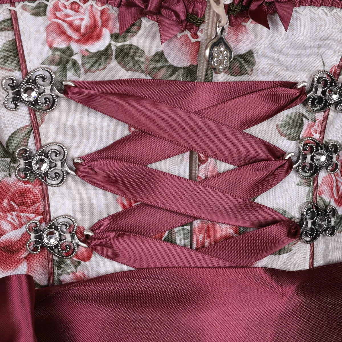 – Midi Dirndl für Damen von der Marke Marjo Trachten. Dieses Dirndl hat eine Länge von 58 cm. Der Herz-Ausschnitt wird von einer Borte begleitet. Zudem wurden Rosen in Rot angebracht. Das Dirndl überzeugt mit seinem floralen Muster.