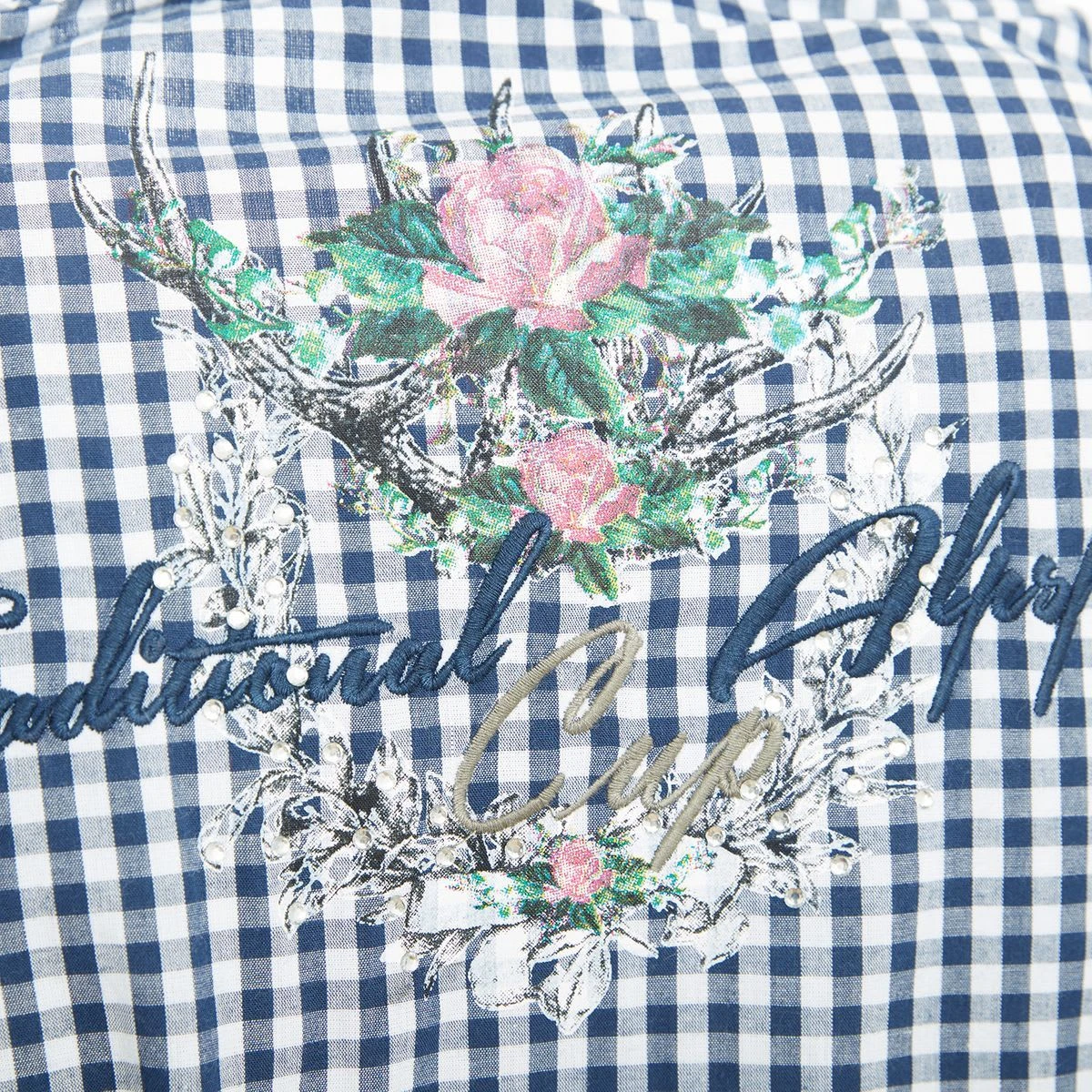 Zauberhafte Trachtenbluse Danella-Beate in Blau von Marjo Trachten. Diese Bluse ist ein absolutes Must-Have für festliche Anlässe! Die Trachtenbluse ist an der Brust und auf dem Rücken mit einem wunderschönen Print und farbigen Verzierungen geschmückt. Auf der Vorderseite ist die Trachtenbluse ist mit einer Knopfleiste zu schließen, die mit geschmackvollen Knöpfen versehen ist. Das Modell ist dank 100% Baumwolle besonders leicht und luftig zu tragen. Zudem ist die Bluse figurbetonend geschnitten und betont somit die feminine Figur. Die blau/weiß karierte Bluse, können Sie zu einem Trachtenrock oder auch Ihrer Lieblingsjeans für den Alltag kombinieren!Jede Dame sollte eine Trachtenbluse in ihrem Schrank haben. Denn dieses Kleidungsstück ist ein wahres Allround-Talent und lässt sich ohne Probleme zur Damen Lederhose, zum Trachtenrock, oder aber auch im Alltag zur Lieblingsjeans kombinieren. Eine Trachtenbluse Damen gibt es in diversen Ausführungen, was Schnitt und Farbe betrifft. Oftmals sind die Blusen tailliert geschnitten, um die weibliche Figur vorteilhaft zu betonen. Eine weiße Trachtenbluse passt besonders gut zum gemusterten Trachtenrock. Die braune Lederhose kann wiederum auch mit einer aufregenden Bluse getragen werden. Carmen-Ausschnitt ist derzeit auch sehr beliebt bei der Trachtenbluse Weiss und in Farbe. Eine jede dieser Blusen lässt sich auch wunderbar im Alltag tragen. Ob Ihnen eine der schlichten Trachtenblusen Damen oder eher ein verspieltes Blusen Modell mit Rüschen gefällt bleibt also ihrem eigenen Geschmack überlassen. Zur schlichten weißen Trachtenbluse kann auch gerne ein Mieder kombiniert werden. Generell passt natürlich zur Trachtenbluse weiß oder farbig sehr gut eine Trachtenjacke oder schicke Strickjacke. Fakt ist: Die Trachtenbluse gehört in jeden Kleiderschrank.