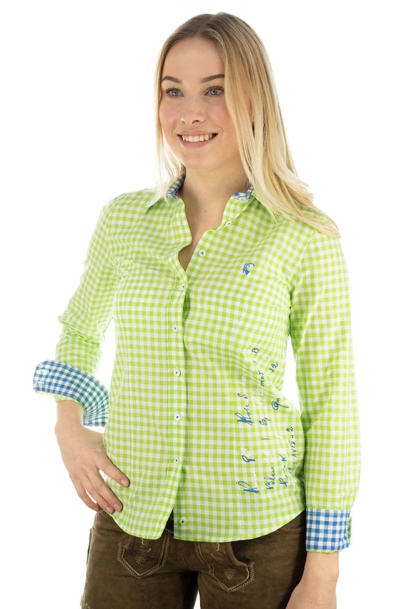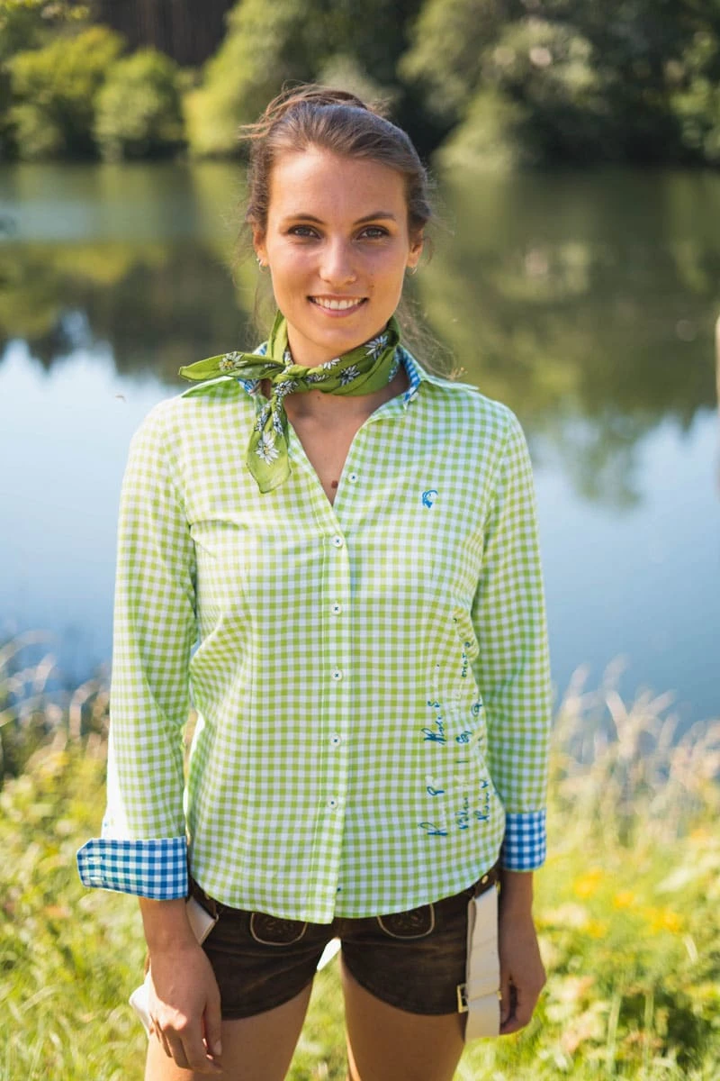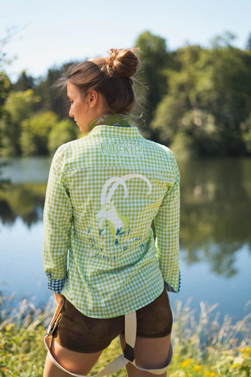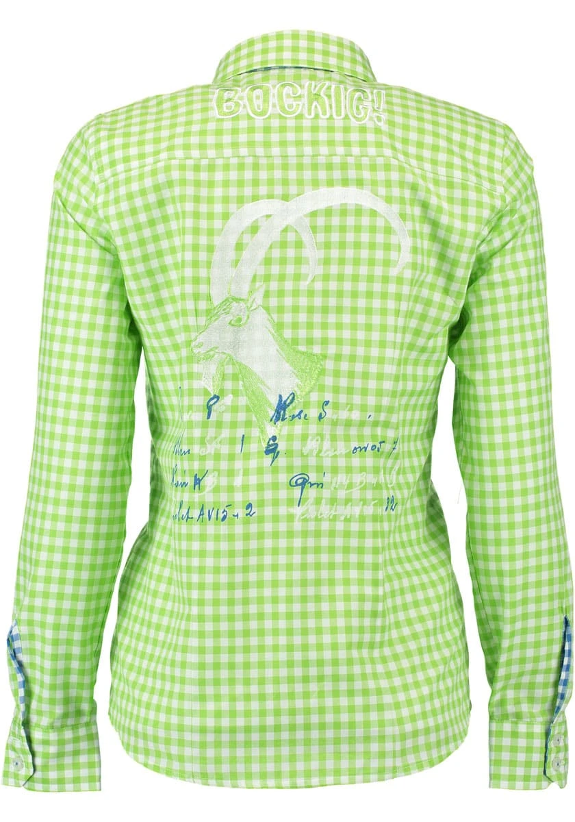 Diese besonders reichhaltig ausgestattete Bluse ist ein deutliches Bekenntnis zur Tracht. Der extrem aufwendige Steinbockstick auf der Rückenpartie prägt diese Wiesnbluse. Das ist moderne Tracht. Auch jetzt im Alltag kann sie ideal zur Jeans getragen werden und setzt markante alpine Akzente. Die gedruckten und gestickten Schriftzüge machen die Bluse jung und sportlich. Eine sehr aufwendige Bluse zu einem tollen Preis.