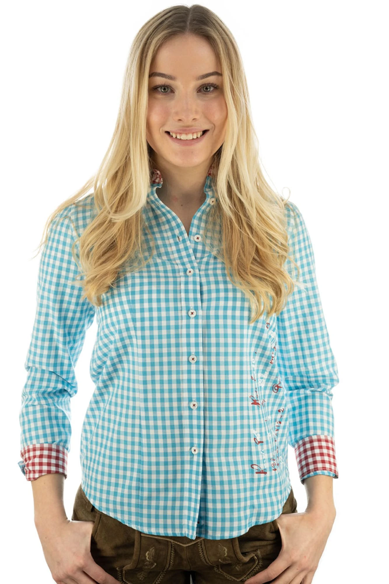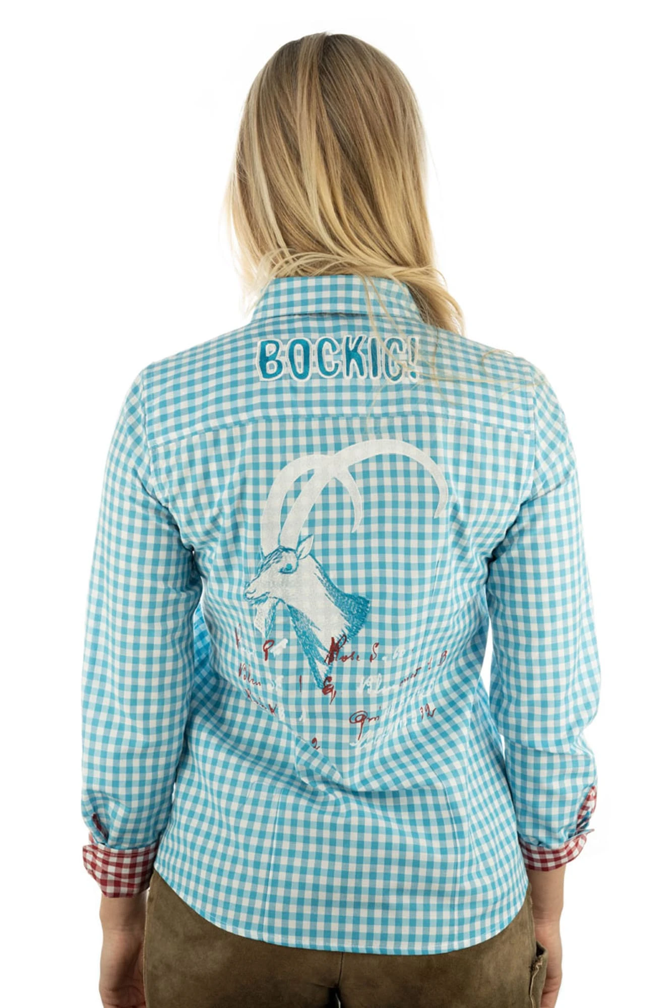 Diese besonders reichhaltig ausgestattete Bluse ist ein deutliches Bekenntnis zur Tracht. Der extrem aufwendige Steinbockstick auf der Rückenpartie prägt diese Wiesnbluse. Das ist moderne Tracht. Auch jetzt im Alltag kann sie ideal zur Jeans getragen werden und setzt markante alpine Akzente. Die gedruckten und gestickten Schriftzüge machen die Bluse jung und sportlich. Eine sehr aufwendige Bluse zu einem tollen Preis.
