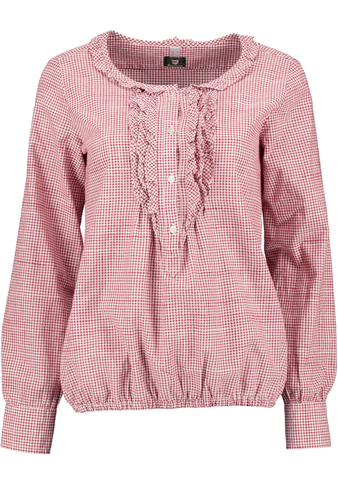 Hineinschlüpfen und wohlfühlen – das ist das Motto für diese frischen Karo-Blusen in Schlupfform von OS Trachten. Sie haben die Wahl zwischen klassischem Rot/Weiß und Blau/Weiß kariert. Einen schönen Kontrast zum strengen Karo bilden die Rüschen an Knopfleiste und dem breiten Ausschnitt. Aus reiner Baumwolle in Größe 34 bis 58 lieferbar.