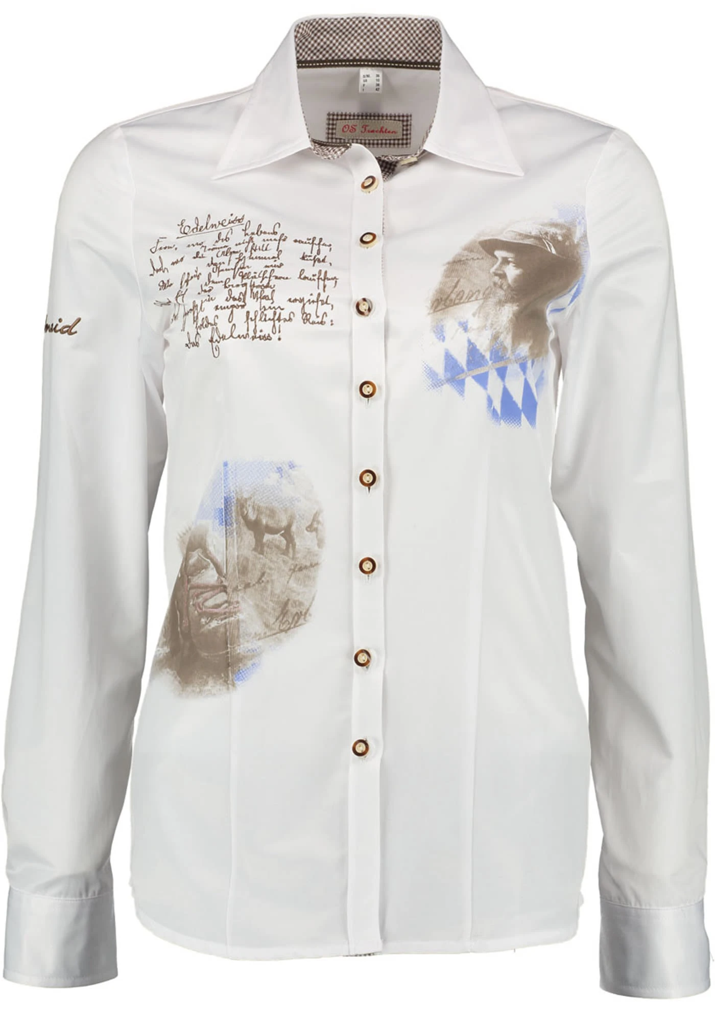 Ihre Liebe zu den Bergen und zum Edelweiß können Sie mit dieser Bluse ausdrücken. Das Druckmotiv und die feine Stickerei lenken alle Blicke auf sich. Aus pflegeleichter Baumwollmischung. Von Größe 32 bis 54 in der aktuellen Kollektion von OS Trachten.
