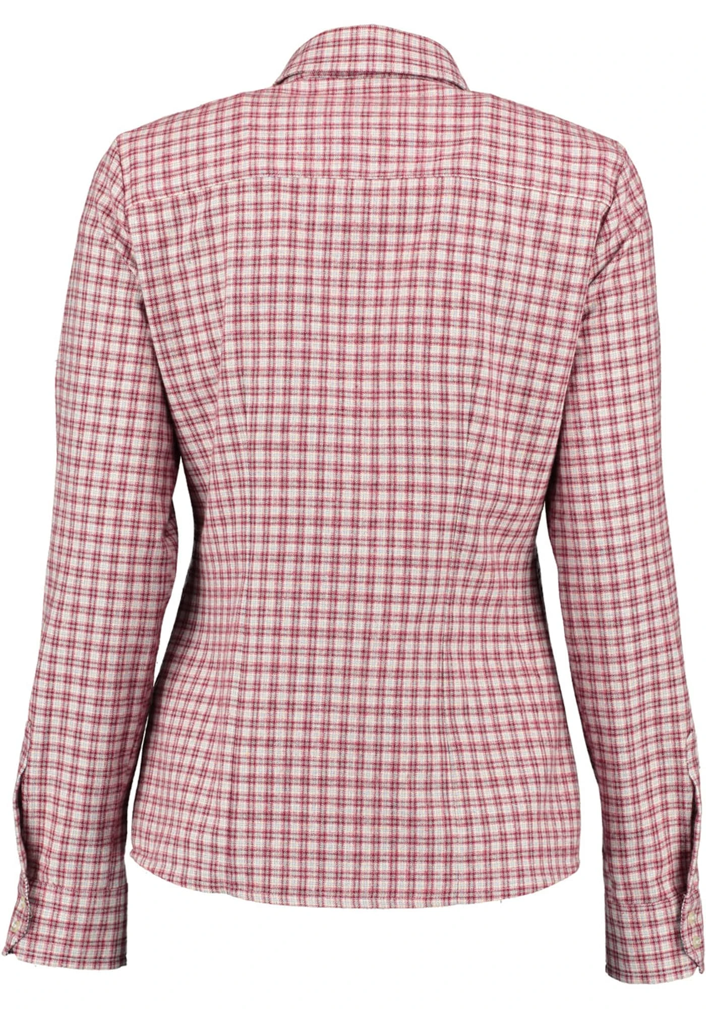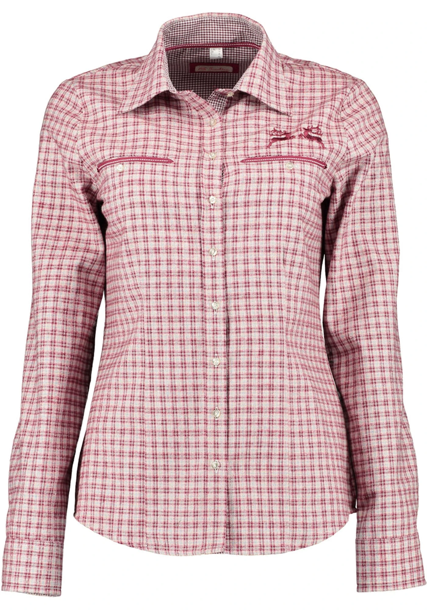 Eine besondere Flanellbluse mit einer aufwändigen Hirschstickerei auf dem linken Vorderteil. Kuschelig weicher Flanellstoff wurde hier mit zwei Leistentaschen verarbeitet. Pflegleicht und langlebig zu tragen zur Tracht oder einfach im Alltag. Gefertigt in zertifizierten Spezialbetrieben in der EU.