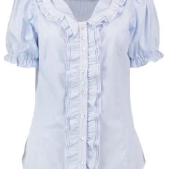Die Damen Trachtenbluse aus Baumwolle ist der perfekte Begleiter für traditionelle bayrische Outfits. Der leichte Baumwollstoff sorgt für Atmungsaktivität und Tragekomfort, sodass die Bluse den ganzen Tag über angenehm zu tragen ist. Der taillierte Schnitt betont die weibliche Silhouette und sorgt für einen stilvollen Auftritt beim Oktoberfest oder anderen Anlässen.