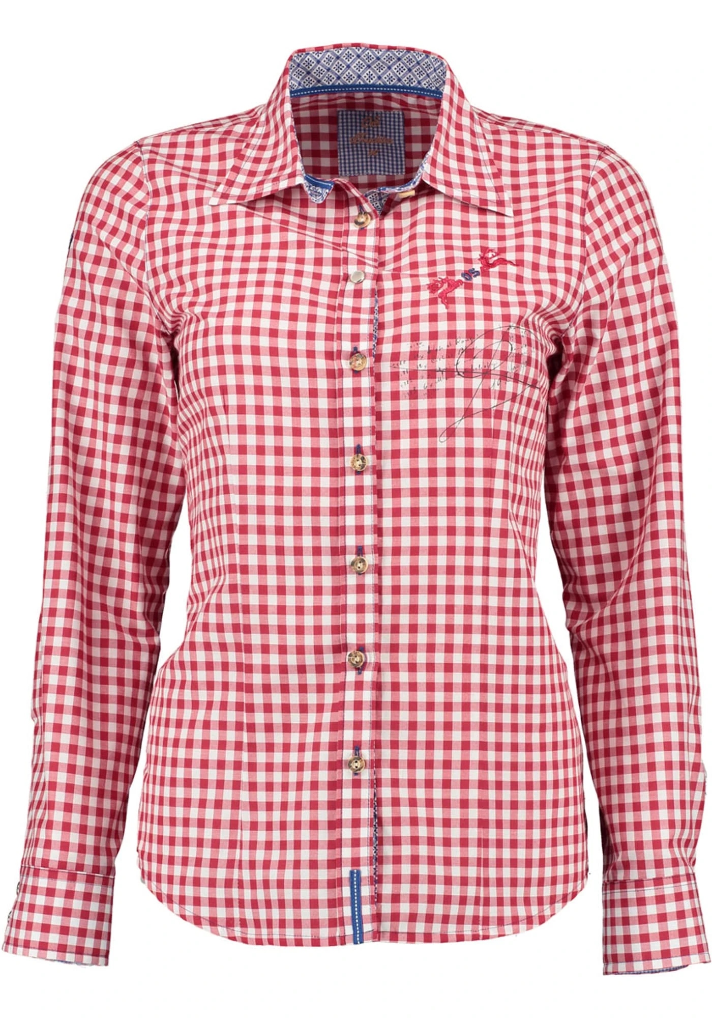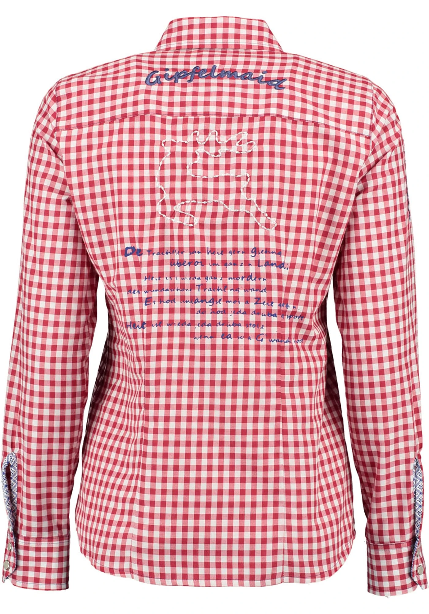 Gipfelmaid ist der treffende Name für diese fesche Bluse von OS Trachten. Das rot-weiße Karo wird mit blau-weißer Stickerei auf Vorder- und Rückenteil sowie Kontrastgewebe im Kragen und an den Manschetten noch aufgepeppt. Aus pflegeleichter Baumwollmischung. Von Größe 32 bis 54 in der aktuellen Kollektion von OS Trachten.