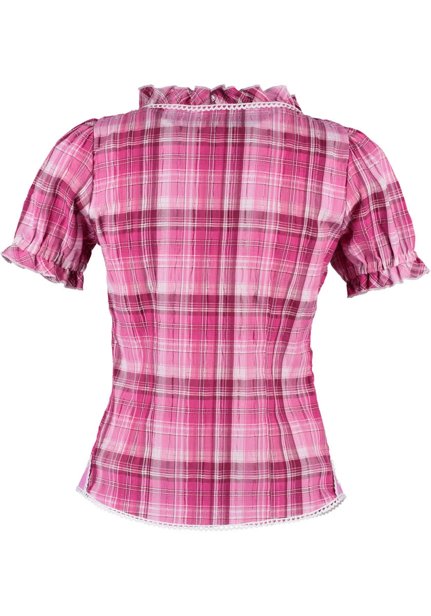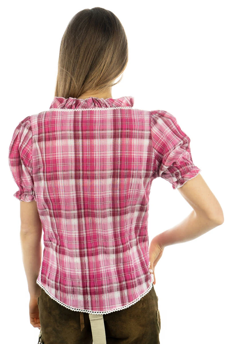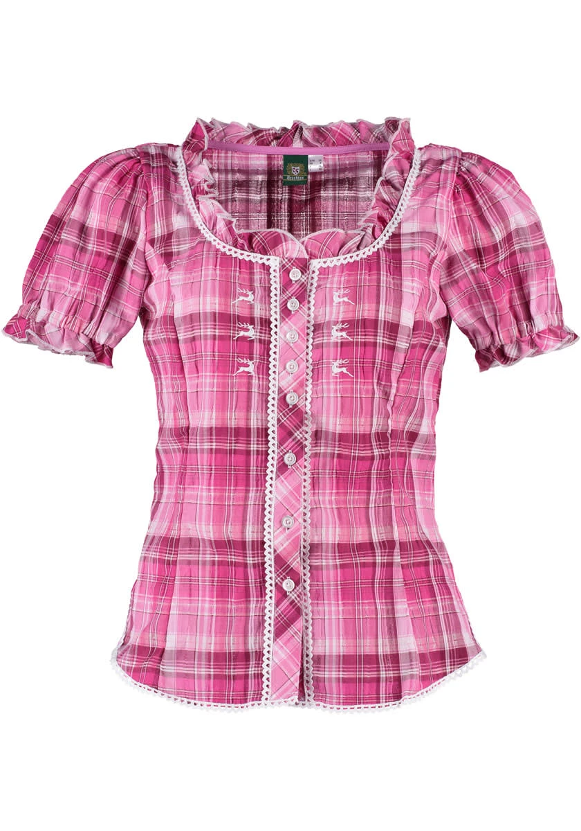 Seersucker heißt das luftige, leicht wellige Gewebe, aus dem diese Trachtenbluse geschneidert ist. Sie haben die Wahl zwischen drei ausdrucksstarken Karos. Allen gemeinsam sind die femininen Accessoires: weiße Litze entlang der Knopfleiste und an den gekräuselten Ärmeln, die dezente Hirsch-Stickerei rechts und links der Knopfleiste. In der aktuellen Kollektion von OS Trachten, von Größe 32 bis 58 lieferbar.