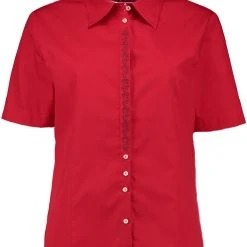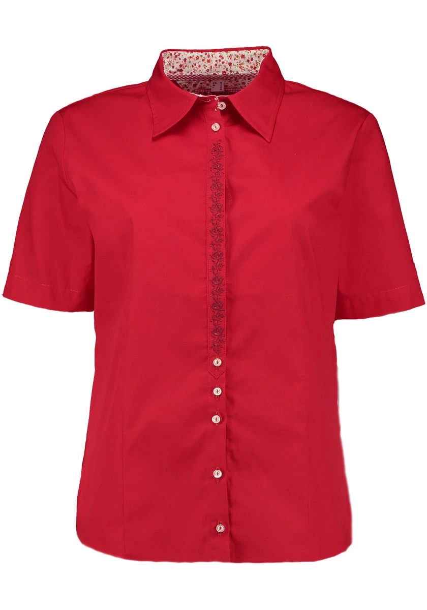 Sie wünschen sich öfter mal rote Rosen? Dann sollten Sie sich diese Bluse gönnen! Der satte Rot-Ton macht schon beim Anziehen gute Laune, dazu kommen die Rosen als Ton-in-Ton-Stickerei auf der verdeckten Knopfleiste. Der Besatzstoff im Kragen nimmt das Thema “Blumen” noch einmal gekonnt auf. Aus reiner Baumwolle. Von Größe 34 bis 54 in der aktuellen Kollektion von OS Trachten.