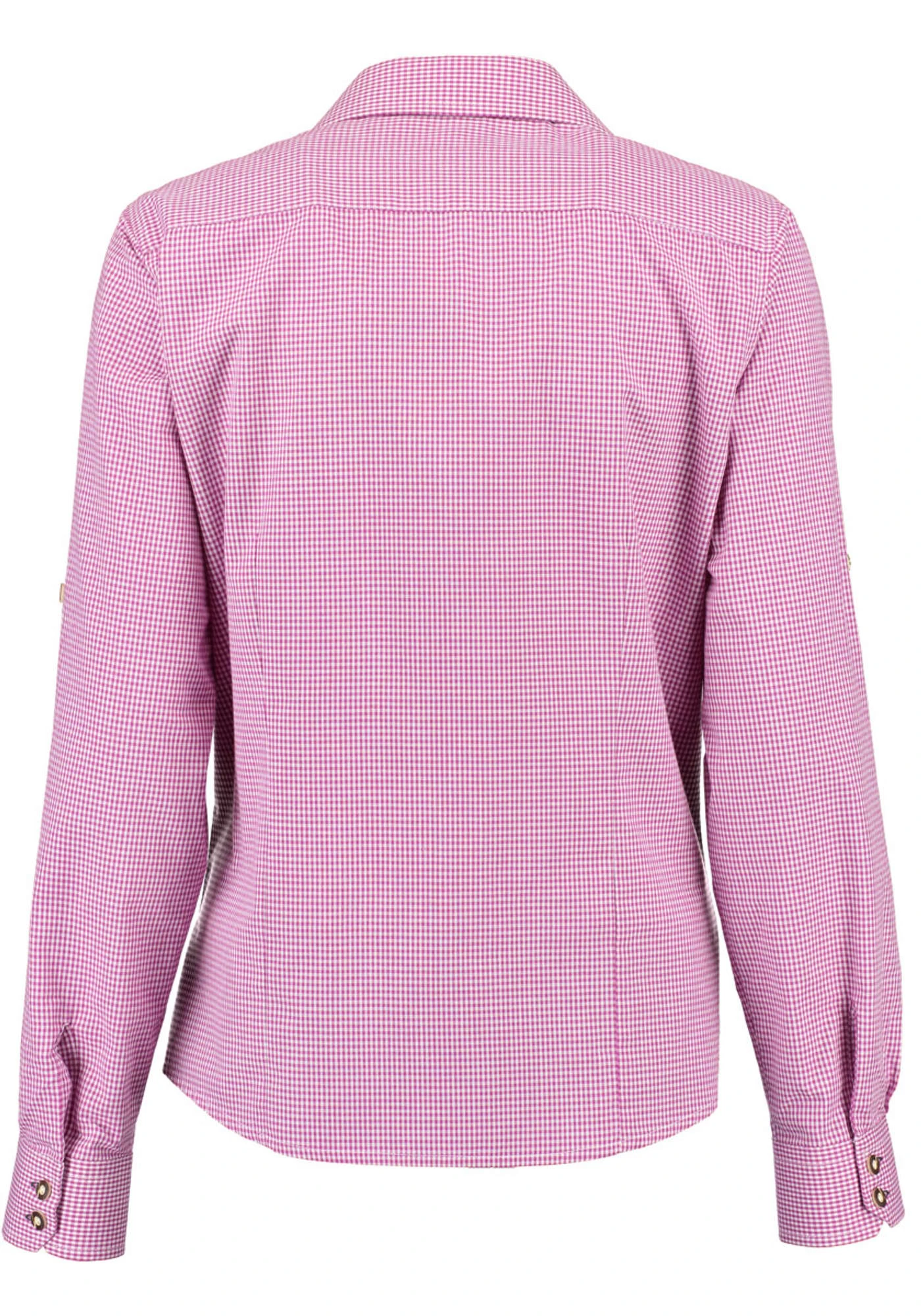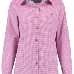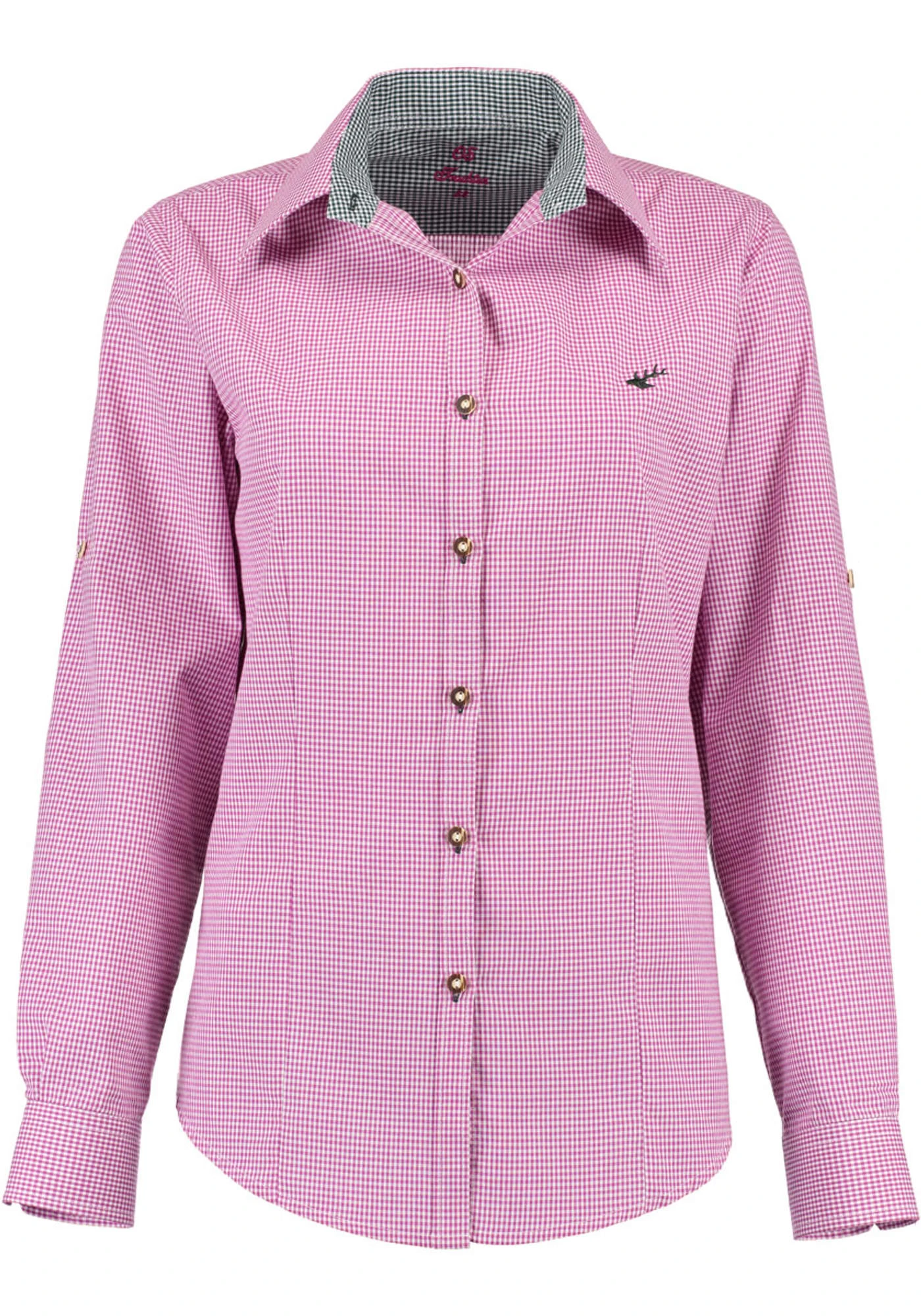 Einfach zünftig: die kleinkarierte Bluse mit Knöpfen in Hirschhorn-Optik und praktischen Krempel-Ärmeln. Die kleine Stickerei auf der Brust beweist ihre Herkunft: vom Spezialisten OS Trachten. Aus pflegeleichtem Mischgewebe. Jetzt in sechs Farben von Größe 34 bis 54 lieferbar.