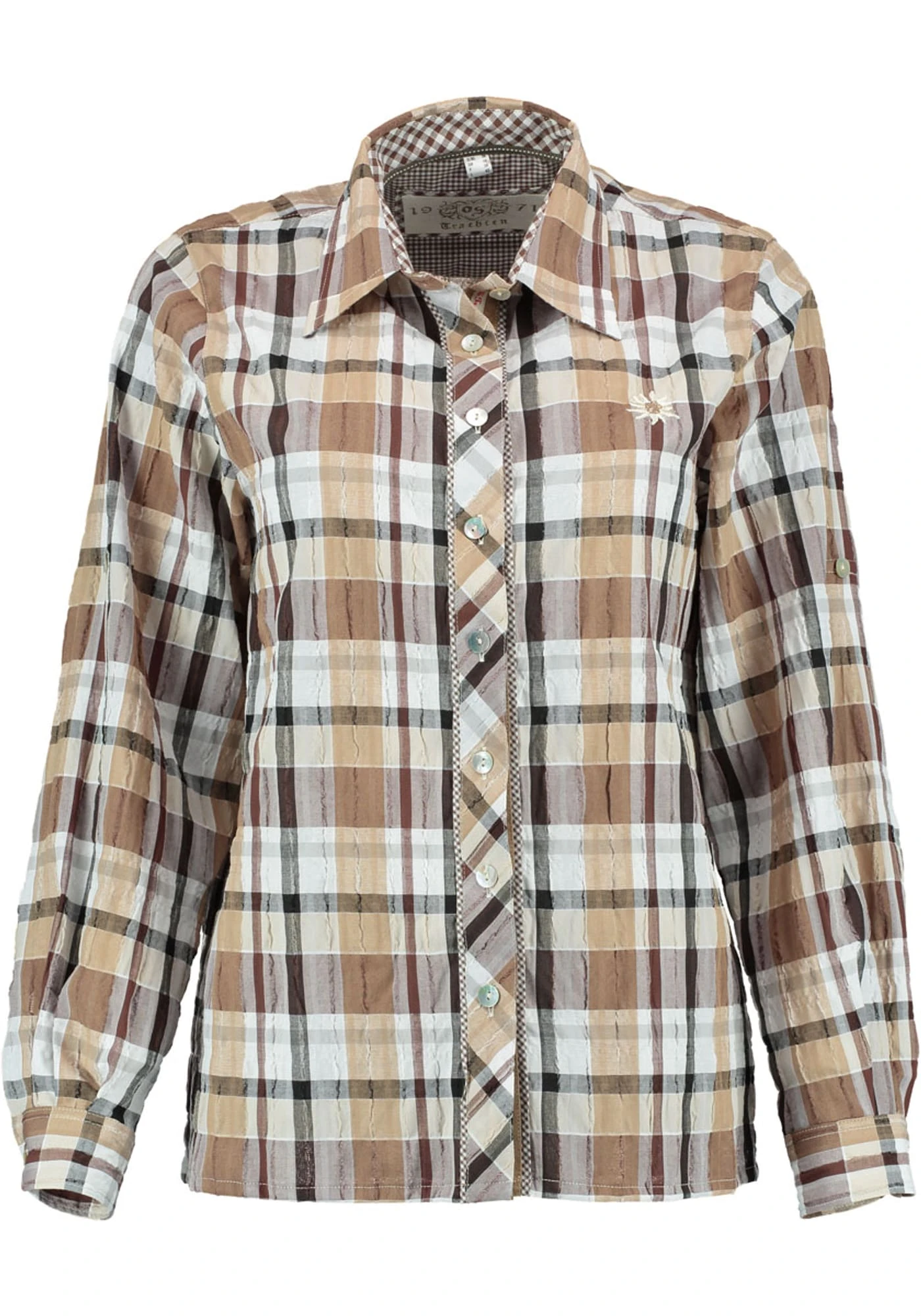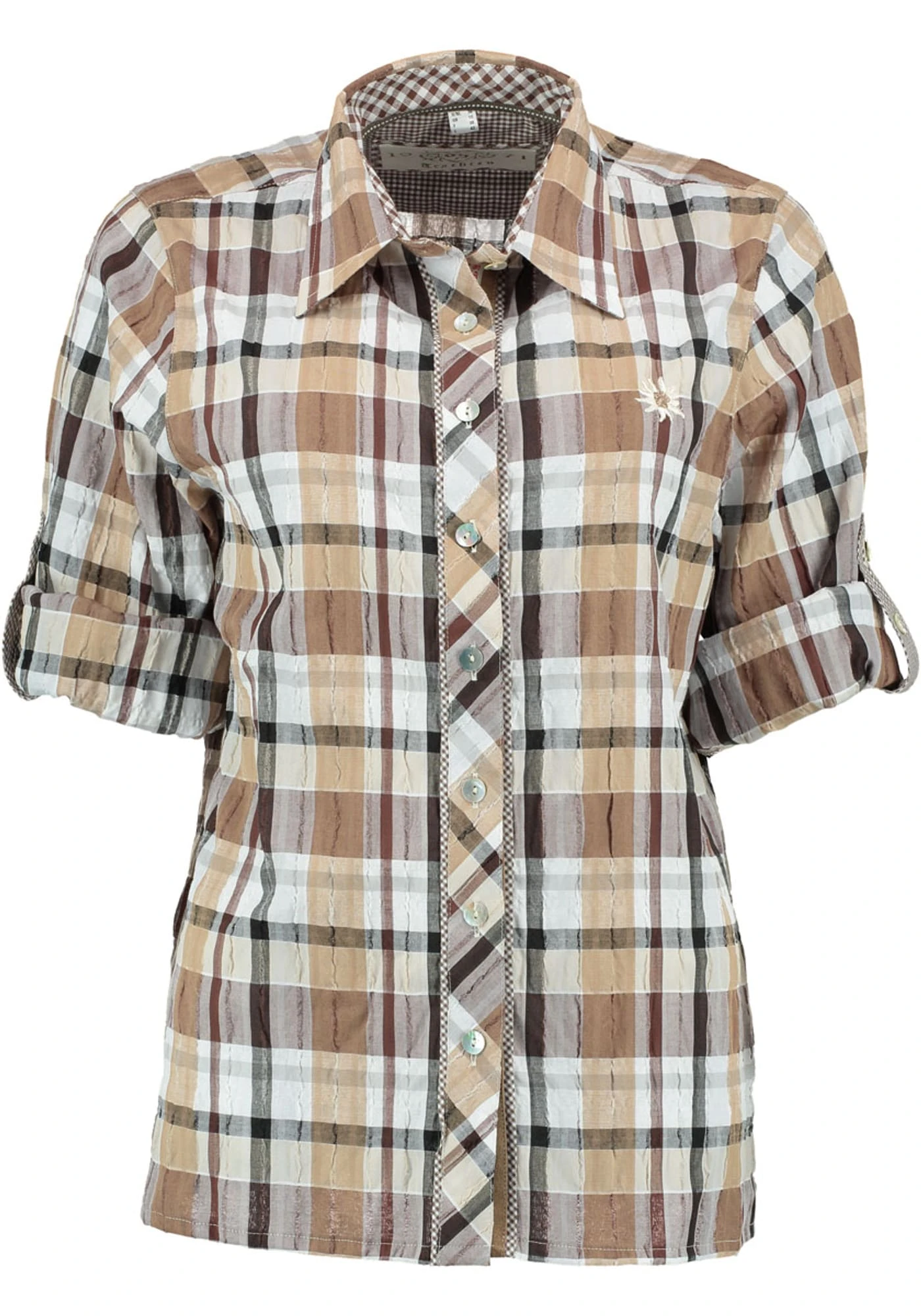 Der Seersuckerstoff dieser OS Trachtenbluse ist besonders luftig und angenehm. Die Bluse braucht praktisch kaum gebügelt werden. Die echten Perlmuttknöpfe, die vielen Kontraststoffe und Verzierungen prägen den handwerklich ausgefeilten Charakter des hochwertigen Produkts. Die Krempelärmel lassen sich im Sommer prima nutzen.