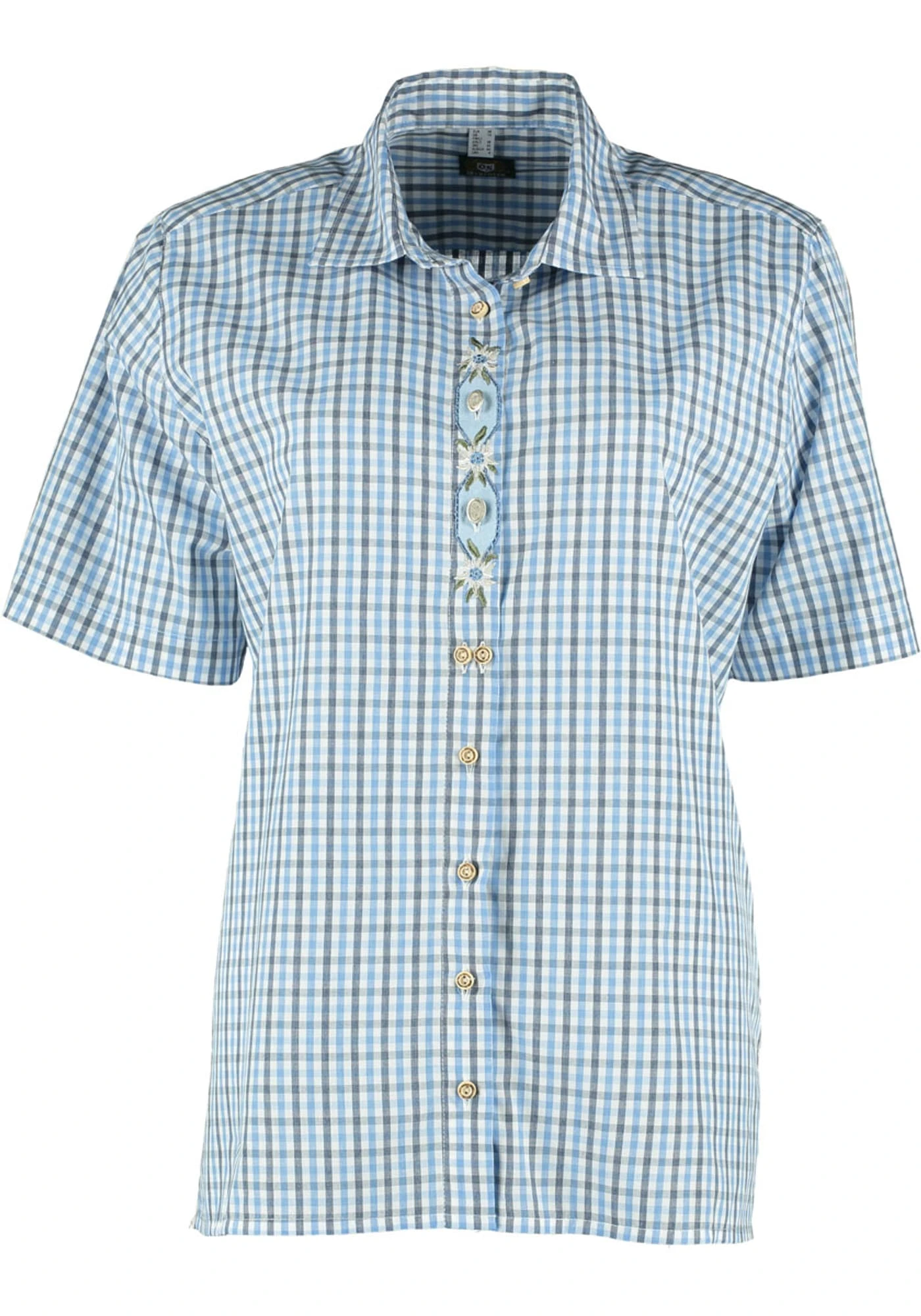 Gegensätze ziehen sich an! Bei dieser Bluse von OS Trachten sind es das strenge, sportive Karo und die liebliche Edelweiß-Stickerei auf der Knopfleiste. Sie haben die Wahl aus drei Farbvarianten, die alle gut kombinierbar sind. Erfreulich pflegeleicht ist das Gewebe aus einer Baumwollmischung. Mit leicht tailliertem Schnitt wirkt die luftige Halbarm-Bluse figurgünstig von Größe 34 bis 54.