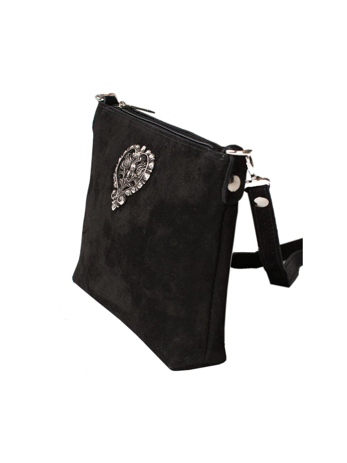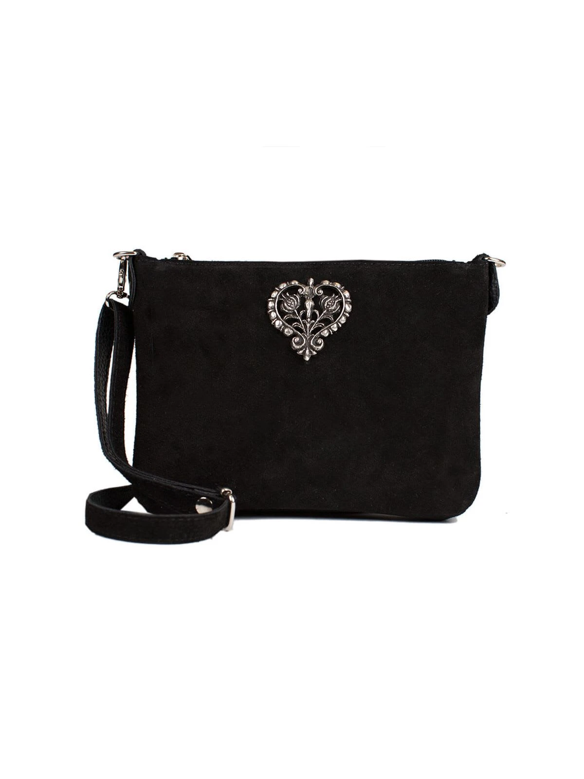 Schuhmacher Leder Trachtentasche TA30540, Metallherz, Schwarz