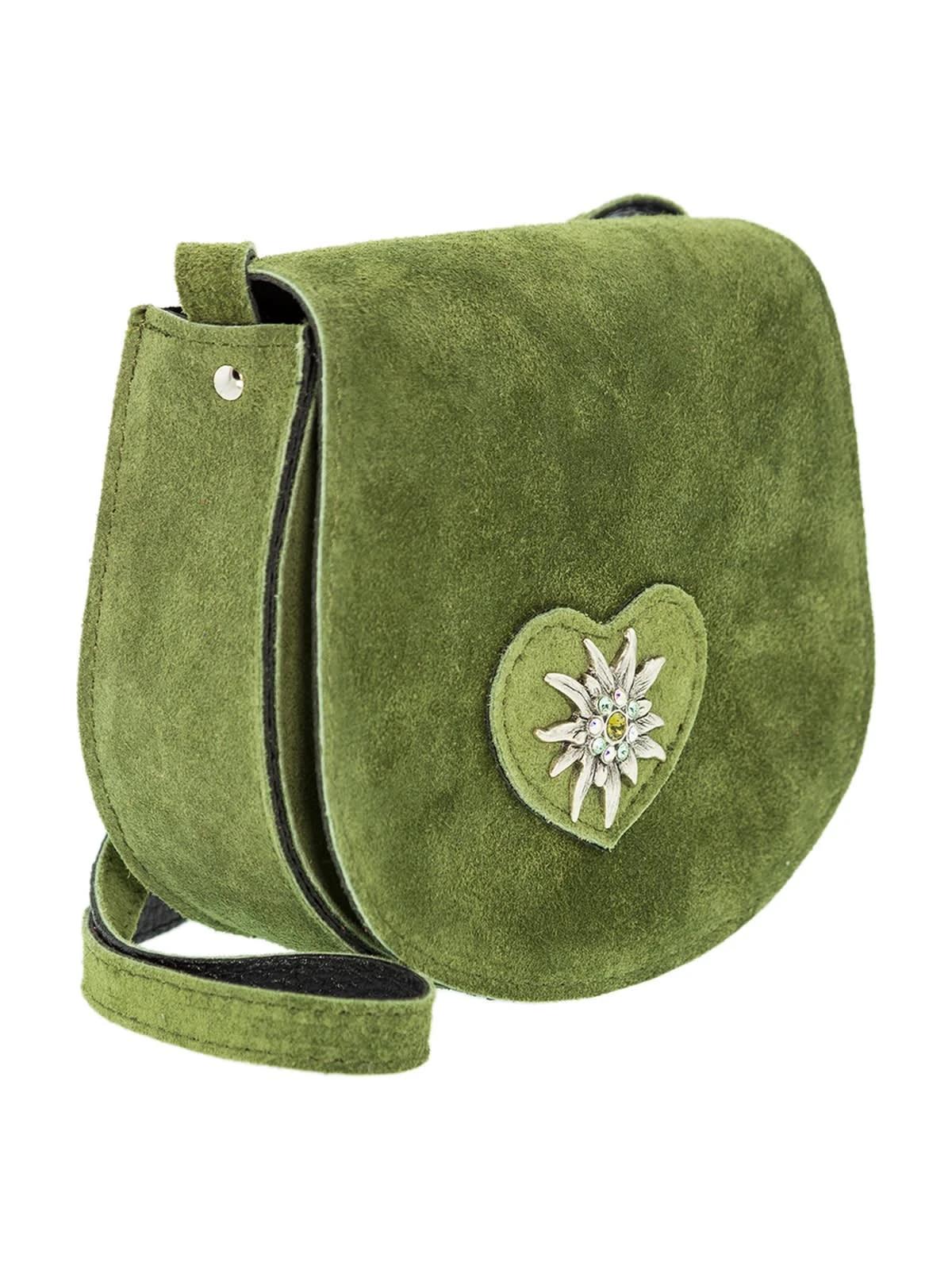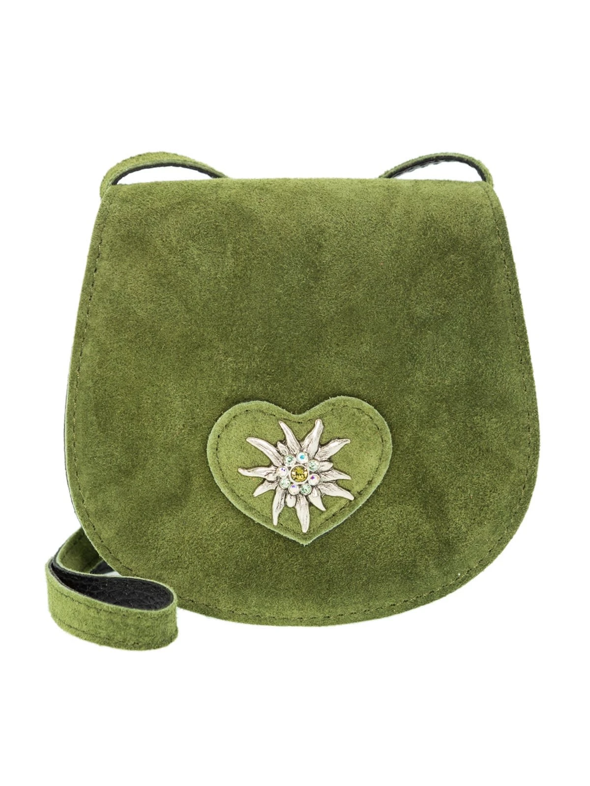 Schuhmacher Trachten Ledertasche TA30340 Herz Edelweiss Oliv