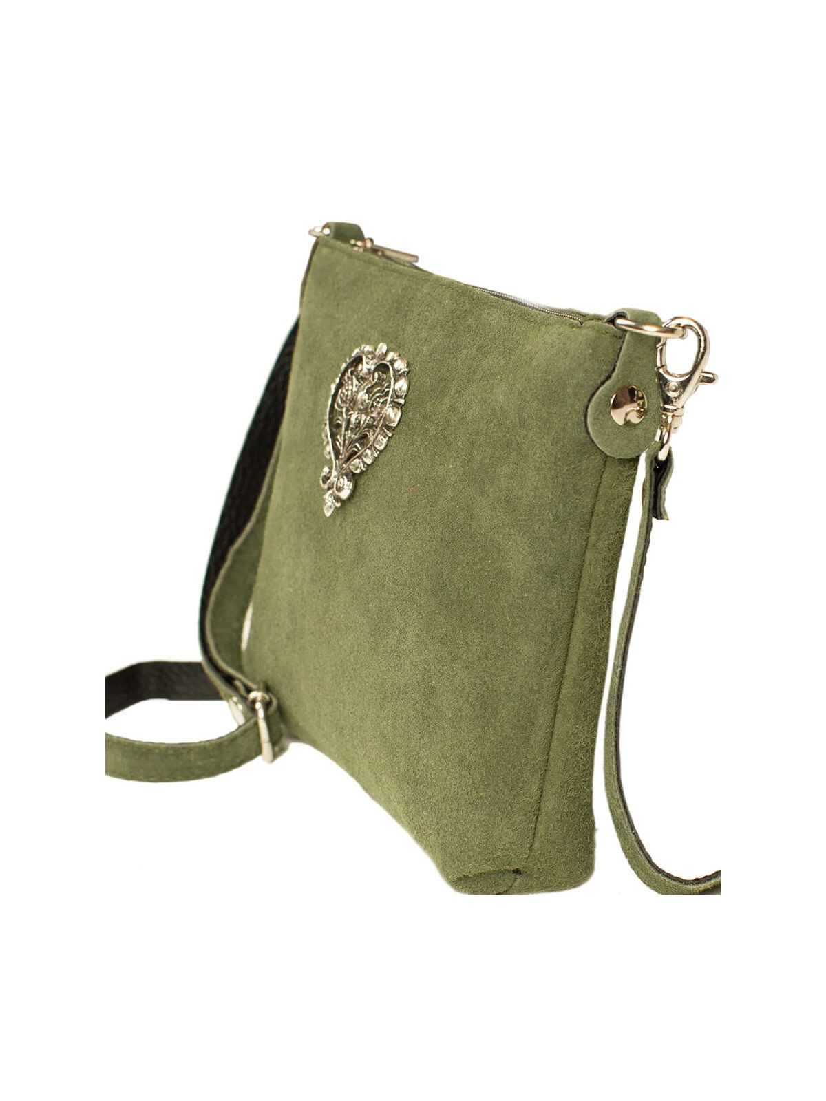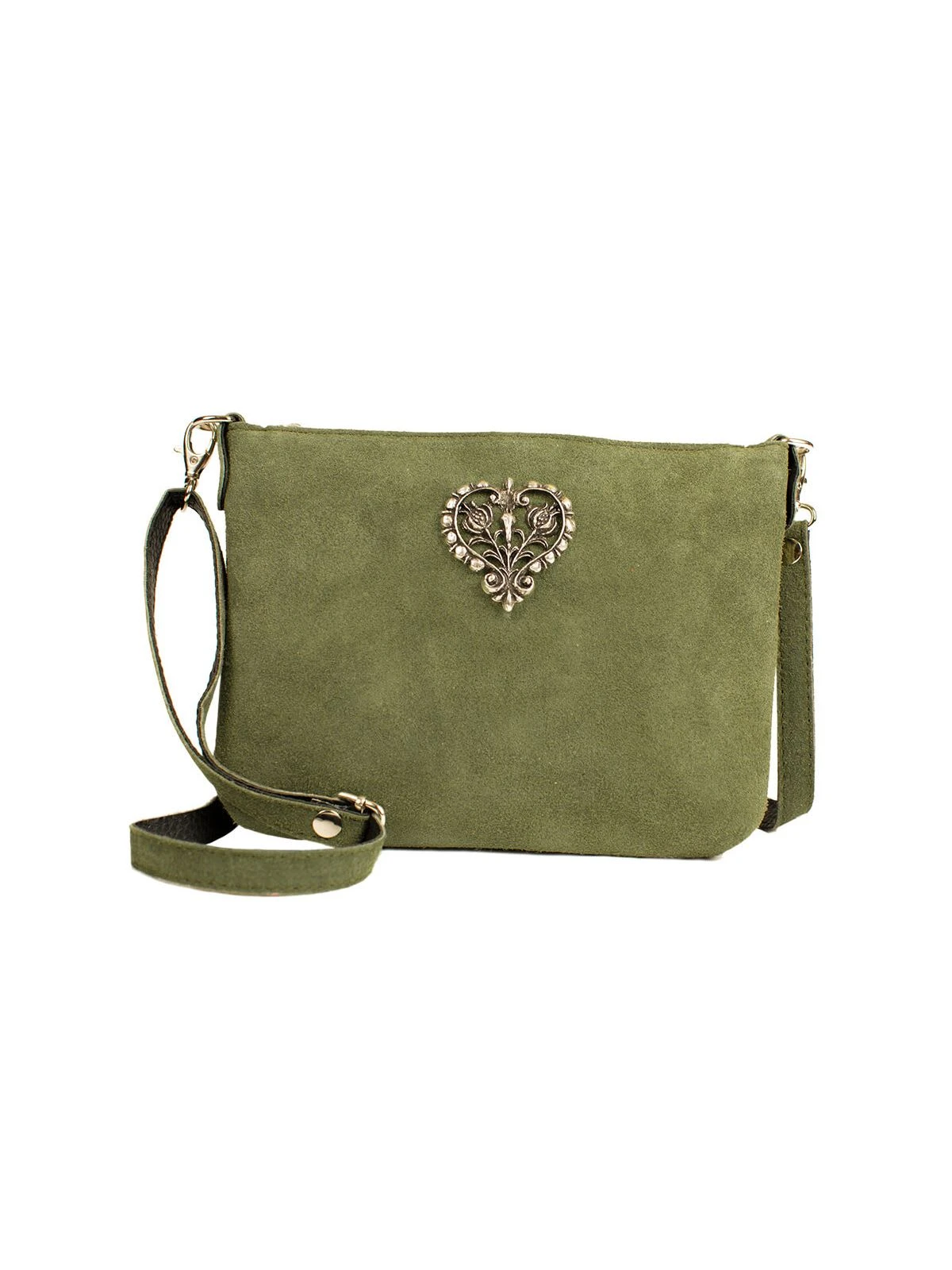 Schuhmacher Wildleder Trachtentasche TA30540, Metallherz, Oliv