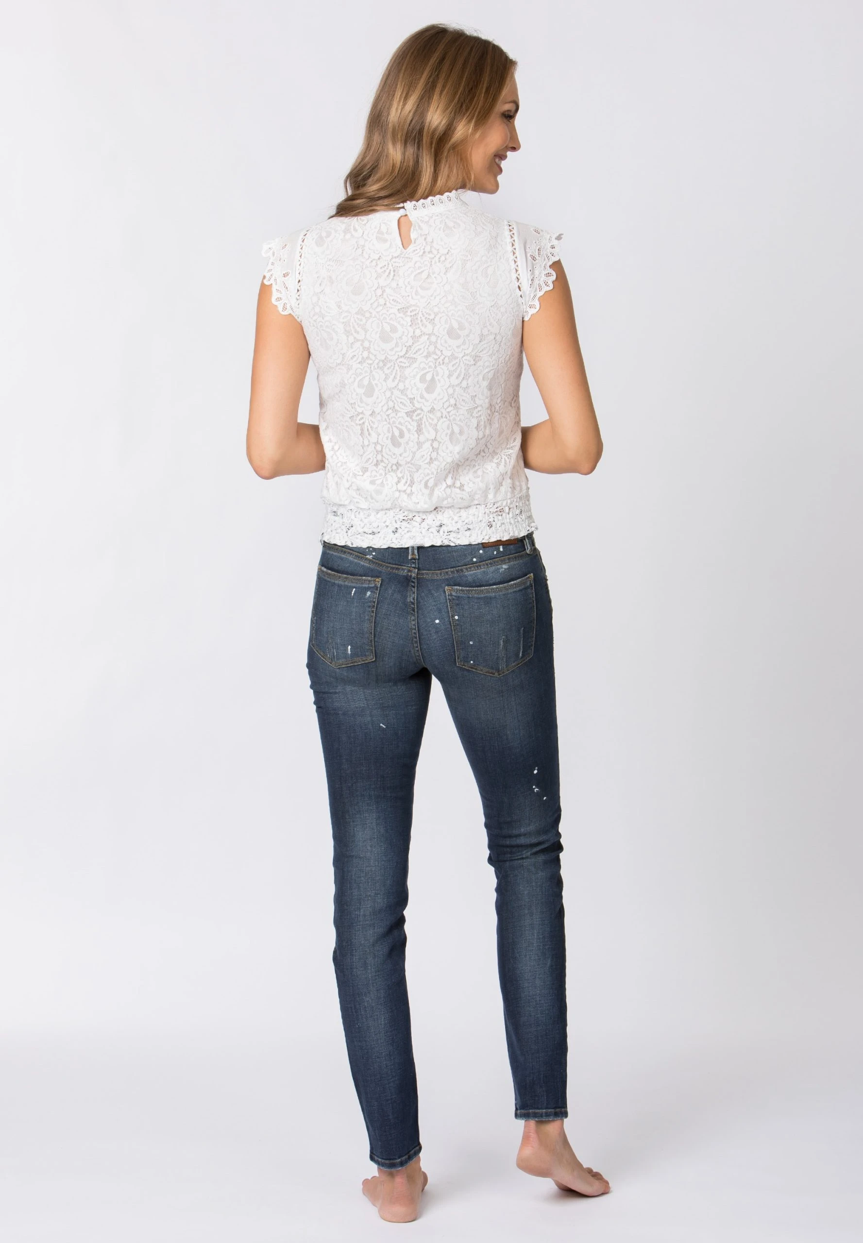 Spitzenbluse Isa von Stockerpoint in weiß. Diese hochwertige Damenbluse verzaubert mit zahlreichen liebevollen Details und gehört zu unseren absoluten Lieblingsstücken. Die raffinierten Biesen in Längsoptik und die kurzen Ärmel mit Spitzenbesatz unterstreichen die feminine Passform. Der ideale Kombipartner zur Lederhose und zur Jeans.