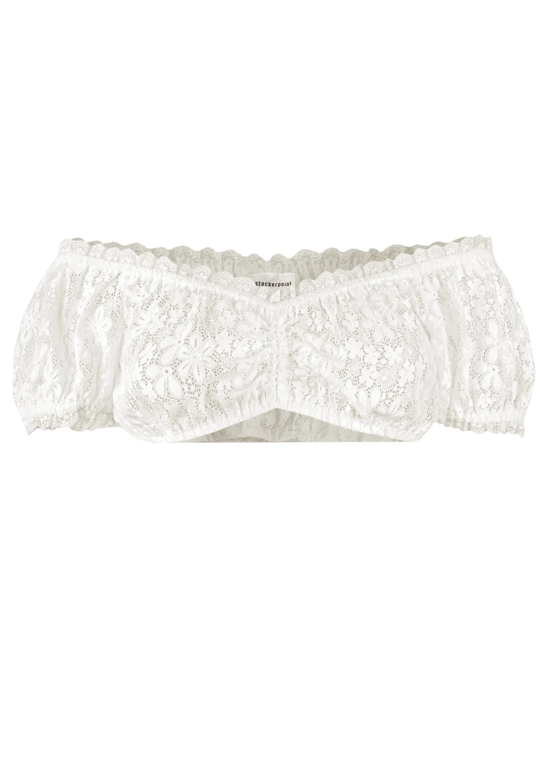 Dirndlbluse Katya von Stockerpoint in creme. Diese raffinierte Damenbluse aus transparentem Spitzenstoff kann im Carmen Look getragen werden und überzeugt durch ihre hervorragende Passform. Sie ist mit einer feinen Spitze verziert und umschmeichelt gekonnt das Dekolleté. Durch den Tunnelzug in der vorderen Mitte kann die Weite am Ausschnitt reguliert werden und passt sich somit perfekt an das Mieder an. Die kleinen Spitzen am Ärmelbund sorgen für einen zusätzlichen Akzent und runden das Design perfekt ab.