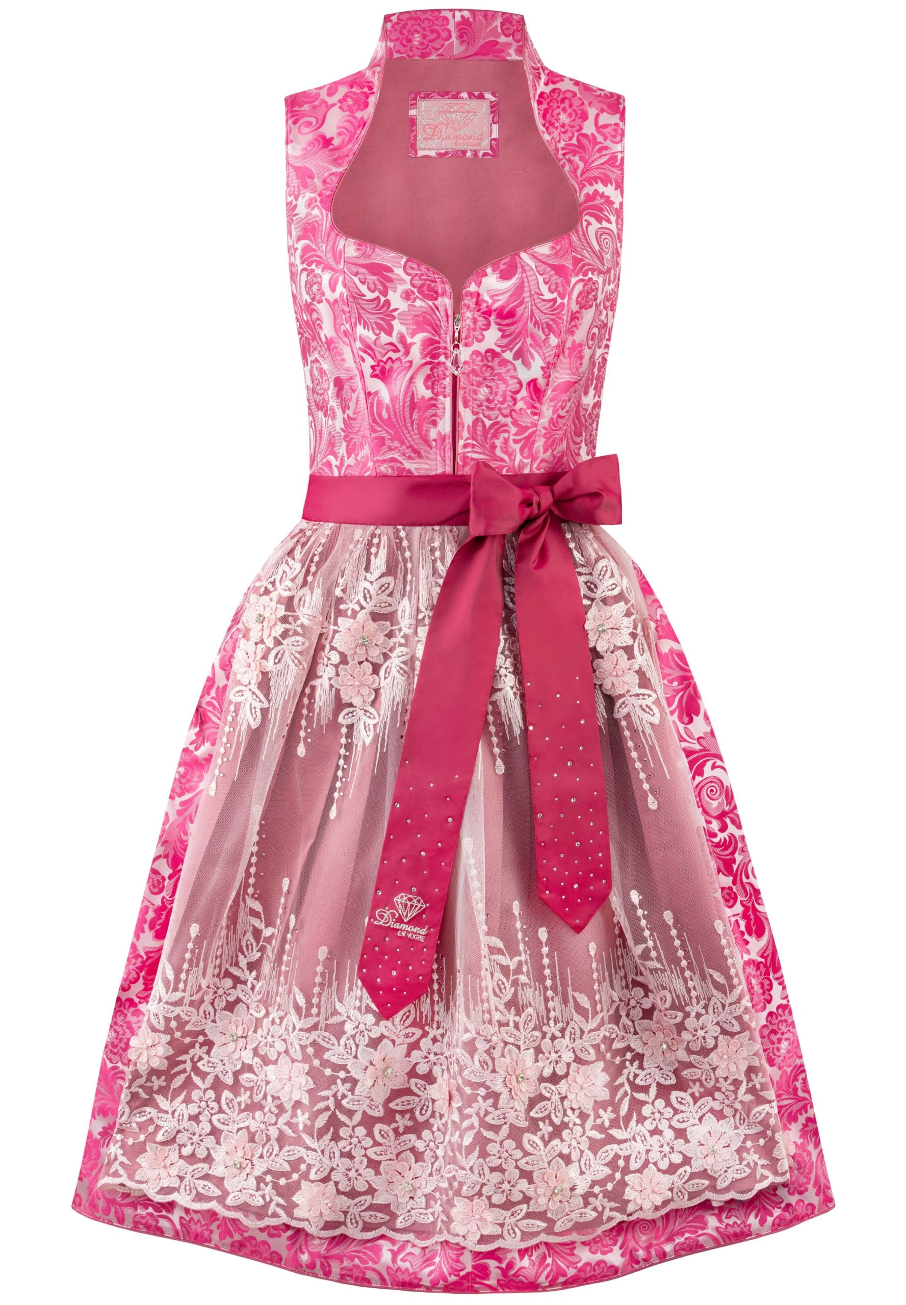 Dirndl Makarissa für Damen aus der exklusiven Kollektion Diamond en vogue in der Farbe romance. Nur die besten Materialien werden in einem luxuriösen Design zu dieser einzigartigen „en vogue“ Livestyle Kollektion veredelt. Der feminine Herzausschnitt mit Schalkragen zaubert ein grandioses Dekolleté und macht das Design zu etwas ganz Besonderem. Das Dirndl ist mit oder ohne Bluse zu tragen und zieht alle Blicke auf sich. Trendige Details und verspielte Kristall-Applikationen prägen die hochwertigen Dirndl von Lili Paul-Roncalli, die sie auch mit designed hat. Tauchen Sie ein in unsere neuen Trachtenwelten und finden Sie Ihr pures Glück…