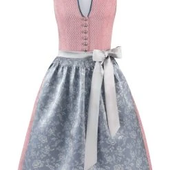 Dirndl Thalina von Heimatgwand in rose. Das Dirndl überzeugt durch die gekonnt abgestimmte Farbharmonie. Der hochgeschlossene Schnitt mit einem angesetzten Stehkragen macht das Modell zum absoluten „must have“. Das feine Samtband am Ausschnitt und am Rock nehmen das Farbspiel erneut auf. Die geblümte Jacquardschürze mit einfarbigem Schürzenband rundet das Gesamtbild perfekt ab. Ein erstklassiger Begleiter auf vielen Festlichkeiten. Unser Model trägt Dirndlbluse Elsa in creme.