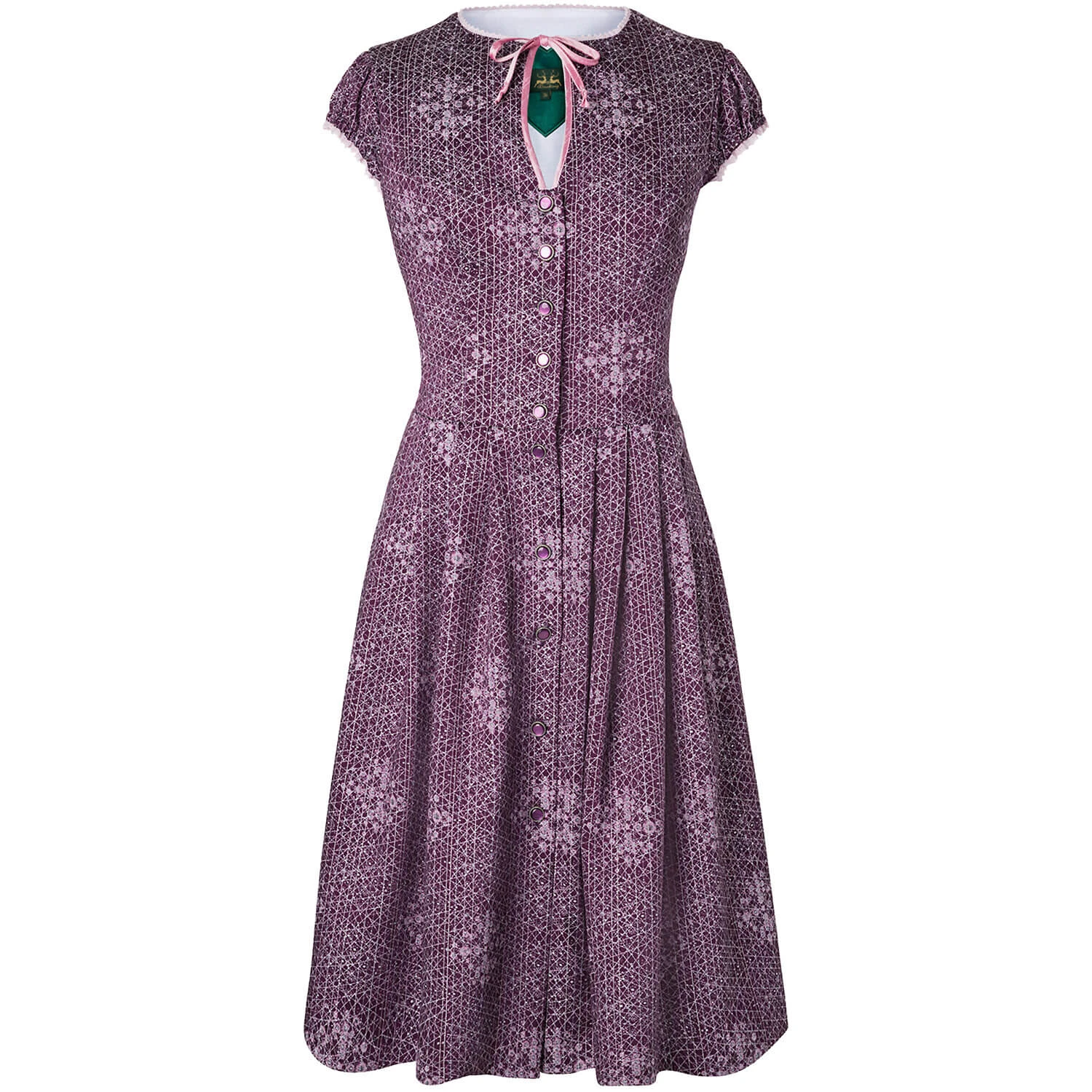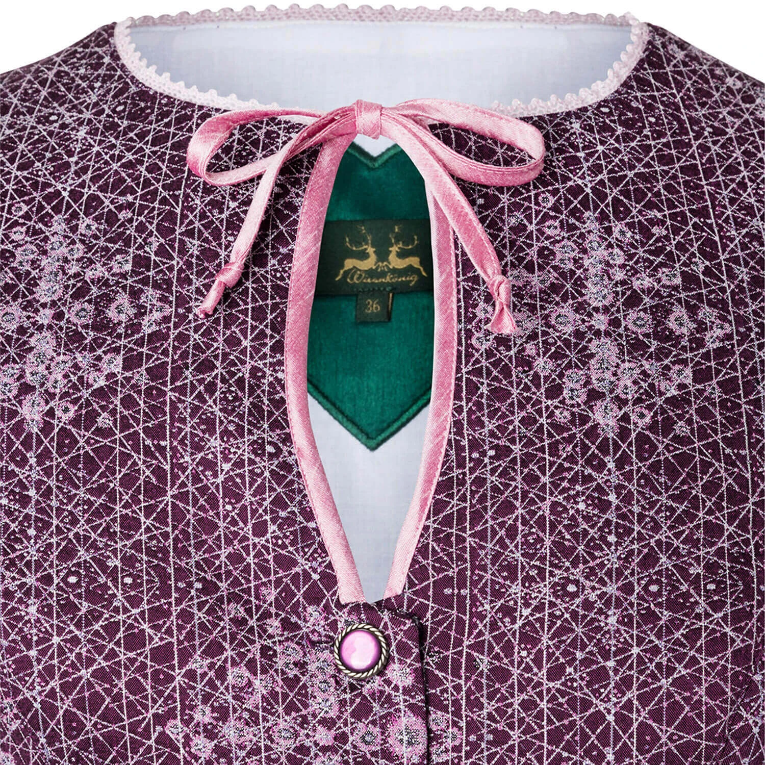 Mit Dirndl Henriette kommt Glamour ins Spiel: Das Wiesnkönig Dirndl ist aus einem hochwertigen Jacquard hergestellt, der mit schimmernden Lurexgarnen durchzogen ist, sodass der Stoff dezent im Licht funkelt. Der runde, hochgeschlossene Ausschnitt, die verspielten Flügelärmelchen sowie die Schürze bilden einen schönen Kontrast und verleihen dem Modell einen ganz besonderen Charme. Ein Dirndl, das nicht mehr viel braucht, um vollkommen zu sein: Ballerinas oder Pumps, kleine Dirndltasche und dezenter Schmuck – fertig ist ein Trachten-Look deluxe!