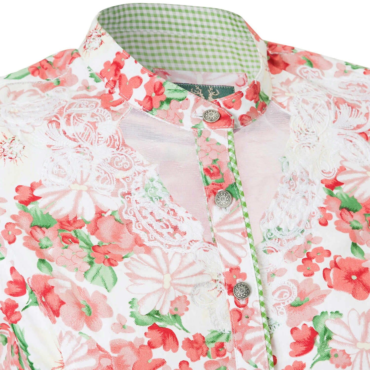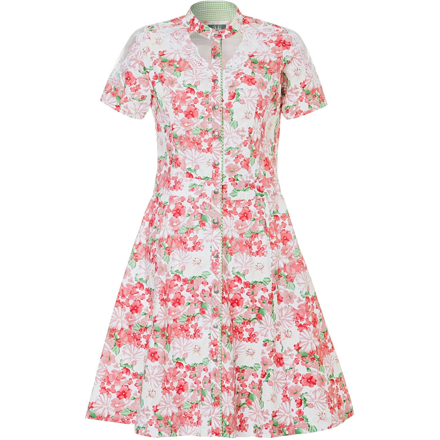 Fashionistas aufgepasst! Tradition und Trend ergeben bei Wiesnkönig Dirndl Maximiliane eine extravagante Symbiose, die durch den ausdrucksstarken Blumenprint sowie delikate Einsätze aus feinem Tüll zum absoluten Hingucker auf jedem Volksfest avanciert. Die rosa Schürze mit schmalen Vichy-Karo-Paspeln in kontrastierender Farbgebung sorgt für einen aufregenden Eye-catcher, welcher das modische Auftreten dieses Modells stilsicher unterstreicht. Die Wiesnkönig Stickerei am Schürzenband bestätigt die erstklassige Qualität.