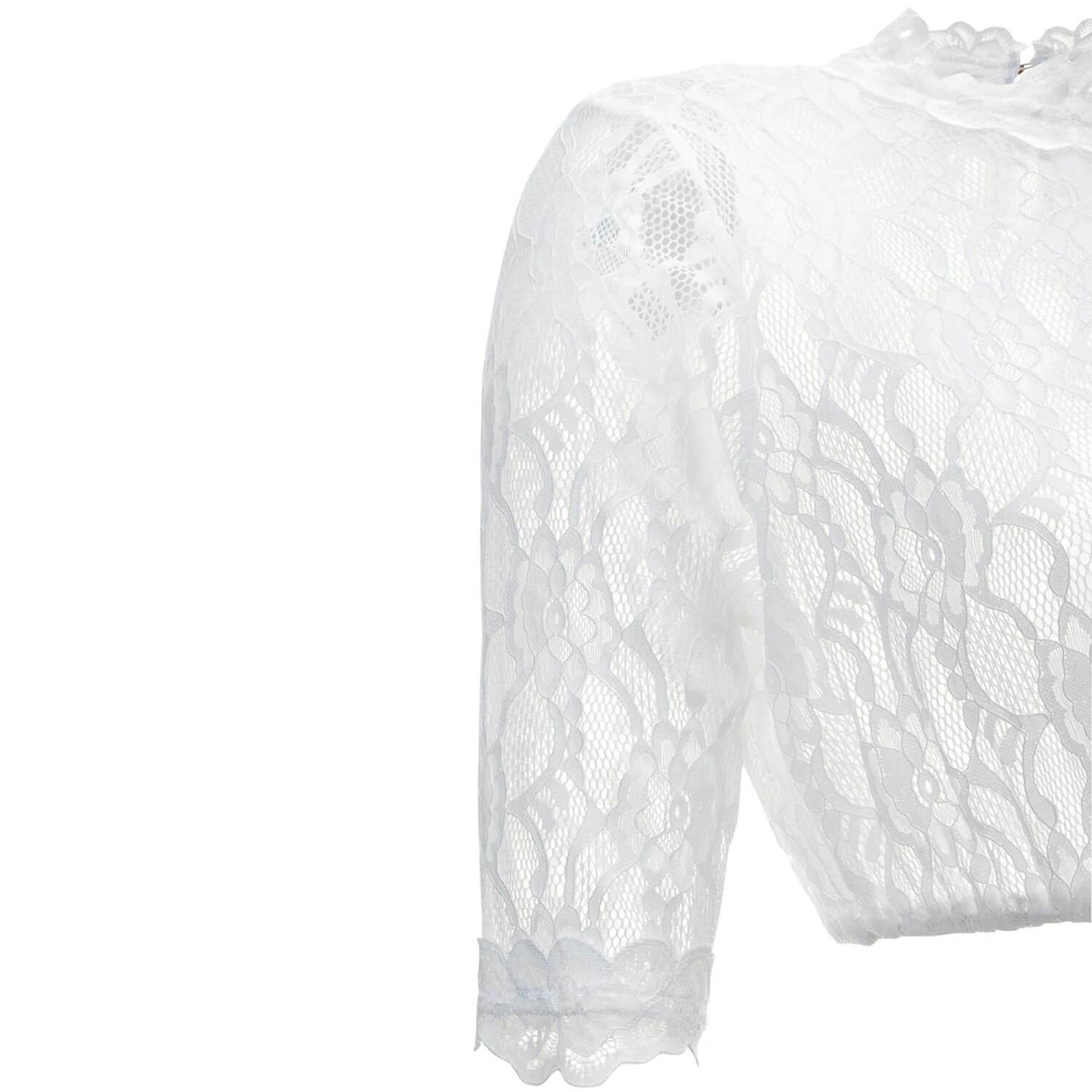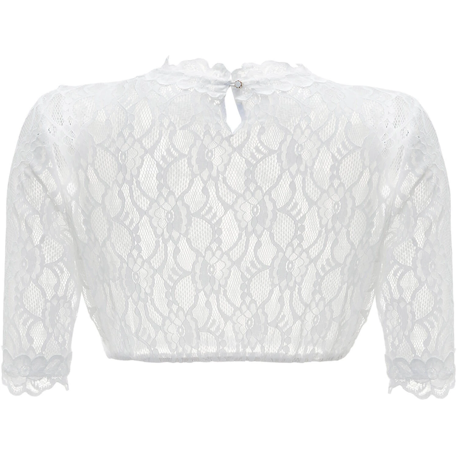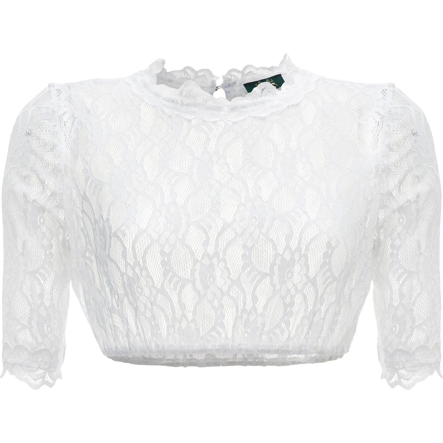 Extravagant und stilsicher setzt die Dirndlbluse Erika von Wiesnkönig feminine Akzente. Die filigrane, florale Spitze versprüht eine weibliche Note, während die verkürzten Ärmel sowie der Rundhalsausschnitt mit Bogenkanten das Design individuell erscheinen lassen. Ein Lieblingsstück, das nicht nur zur Trachtenzeit für Aufsehen sorgt.