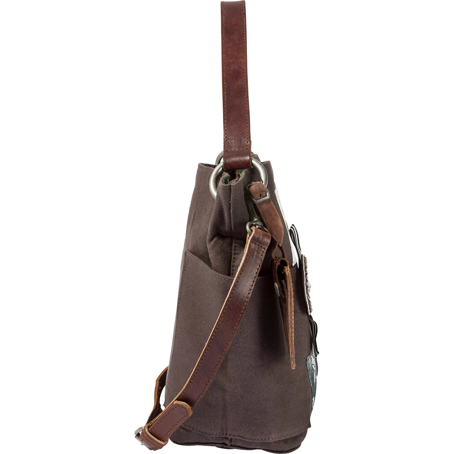 – Ein Lederhenkel mit dicken Metallringen und Ösen befestigt und ein zusätzlicher verstellbarer Schulterriemen aus Leder zum abnehmen, Machen die Tasche zu einem praktischen Begleiter
